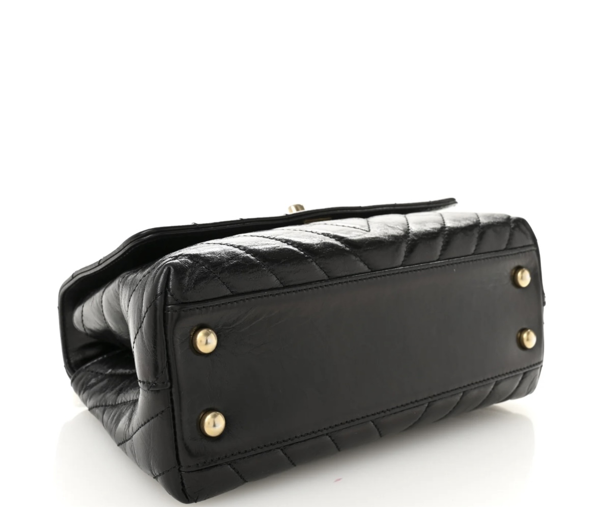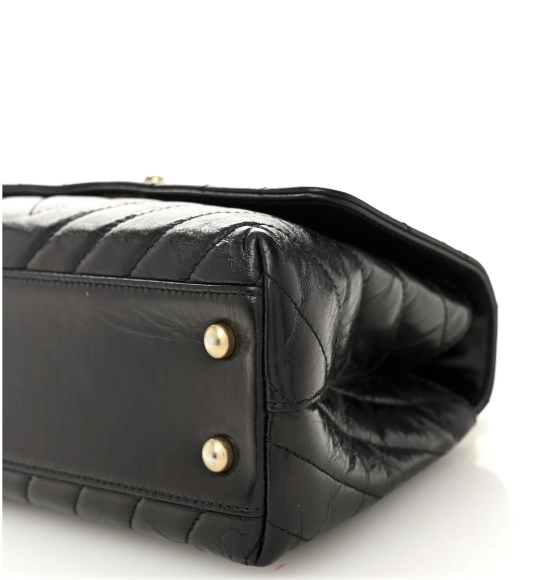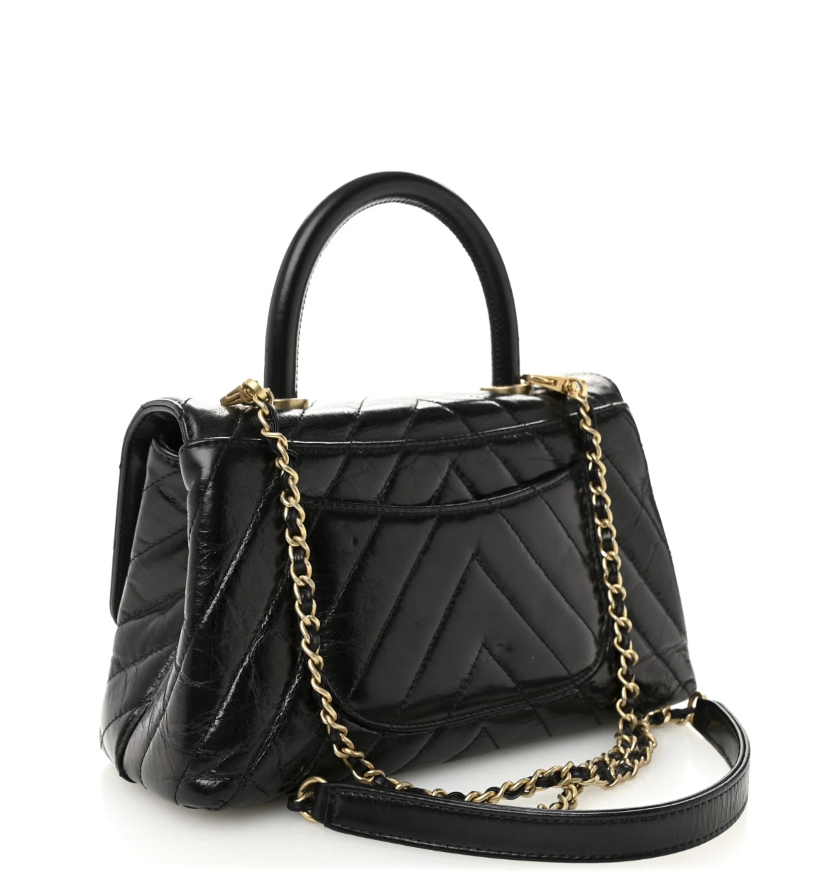 Aged Calfskin Chevron Quilted Mini Coco Handle Flap Black