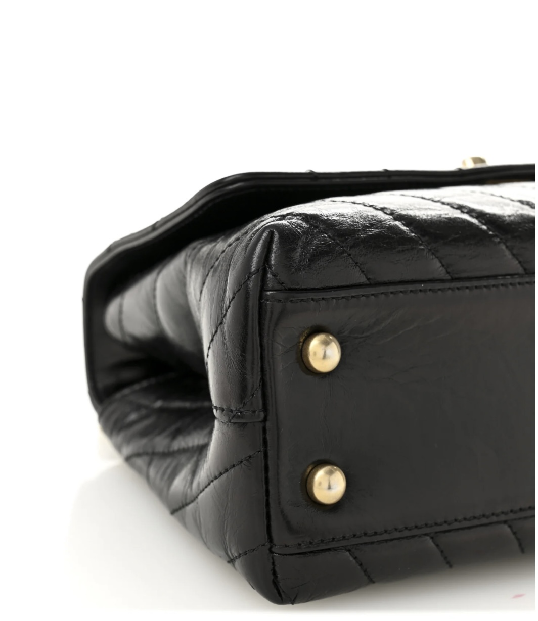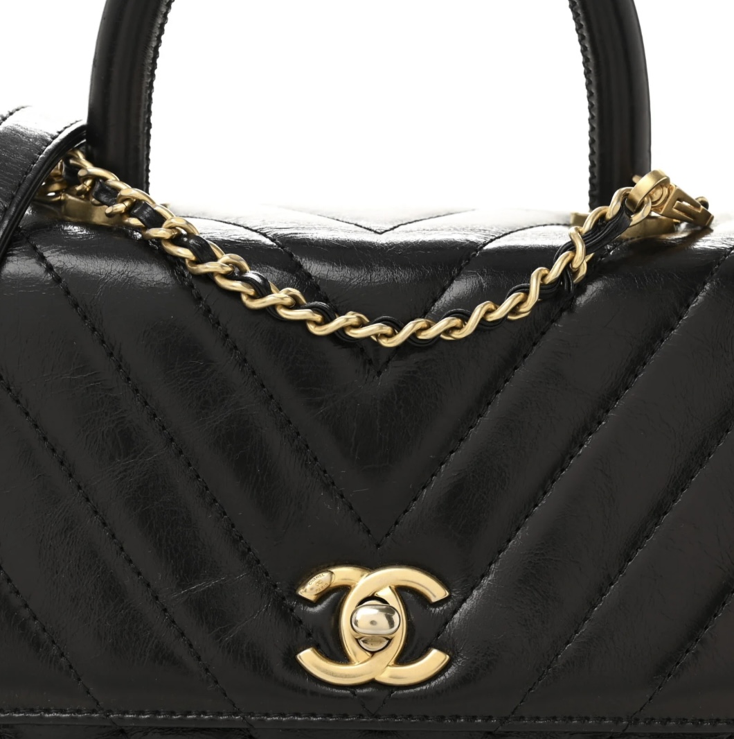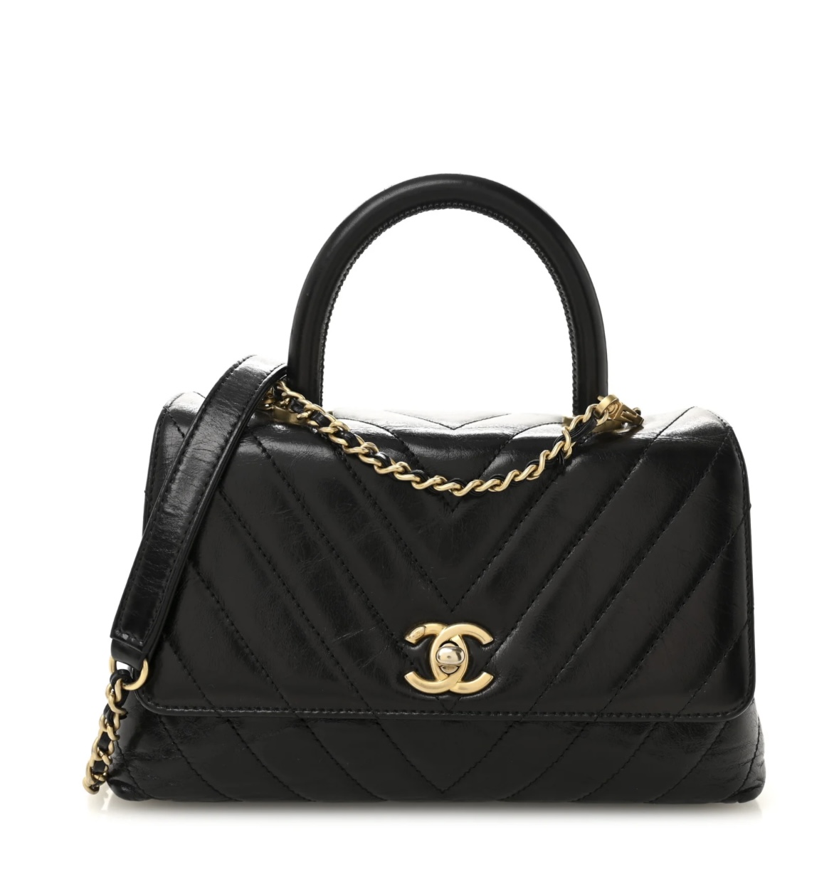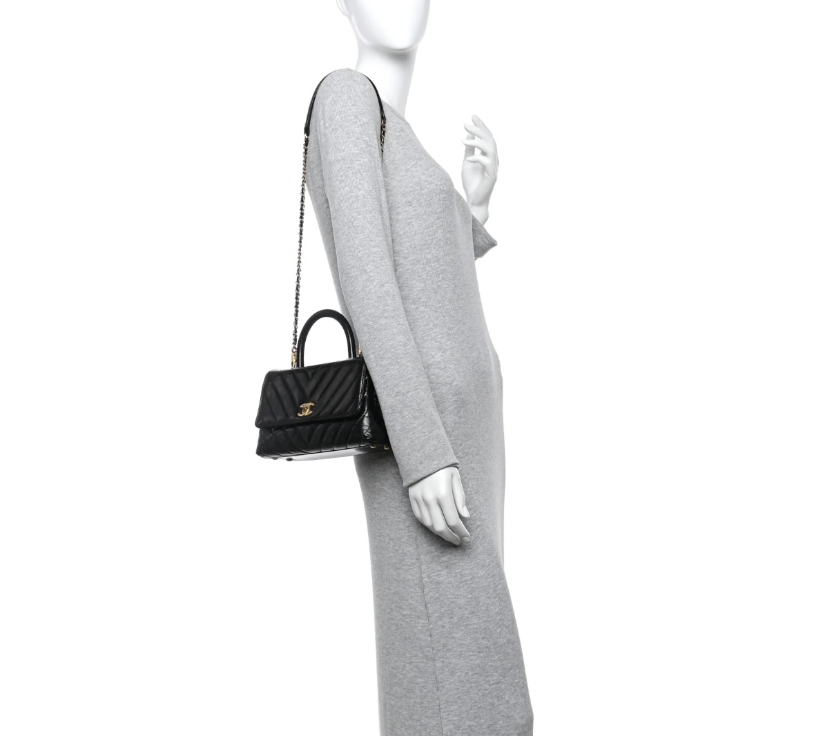 Aged Calfskin Chevron Quilted Mini Coco Handle Flap Black