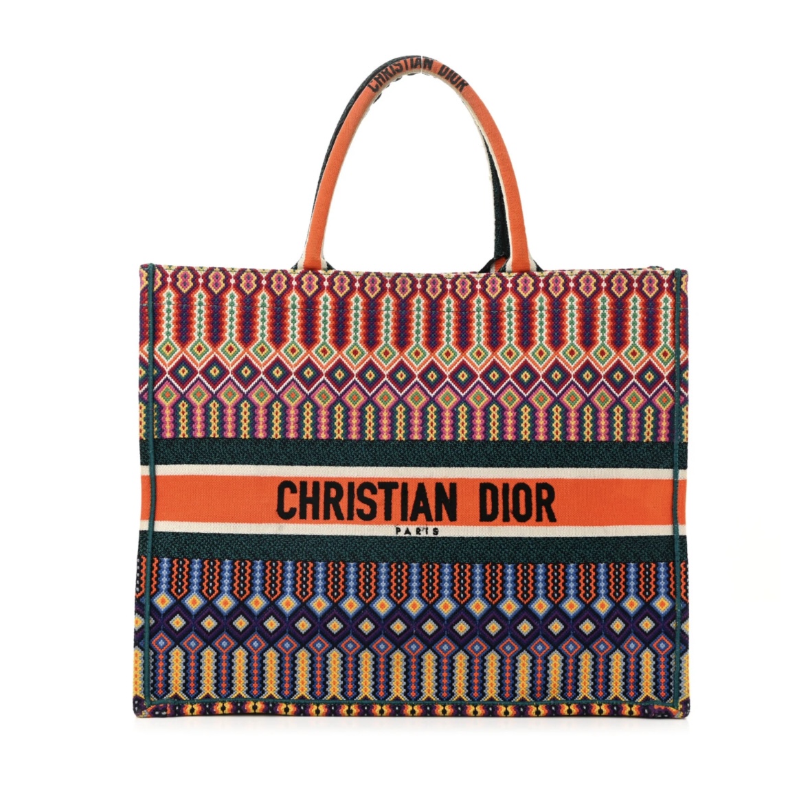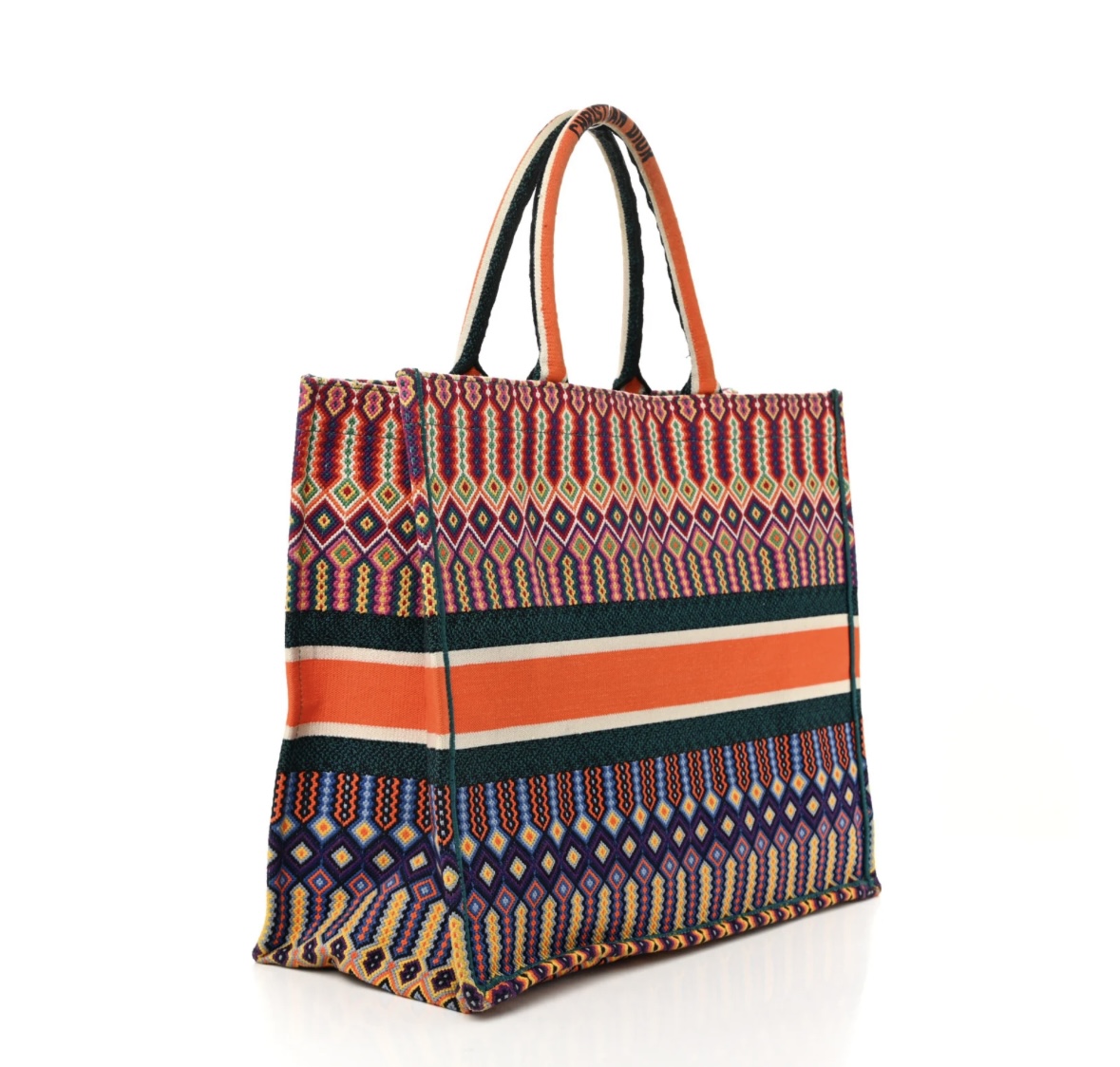 Canvas Embroidered Large Book Tote Orange Multicolor