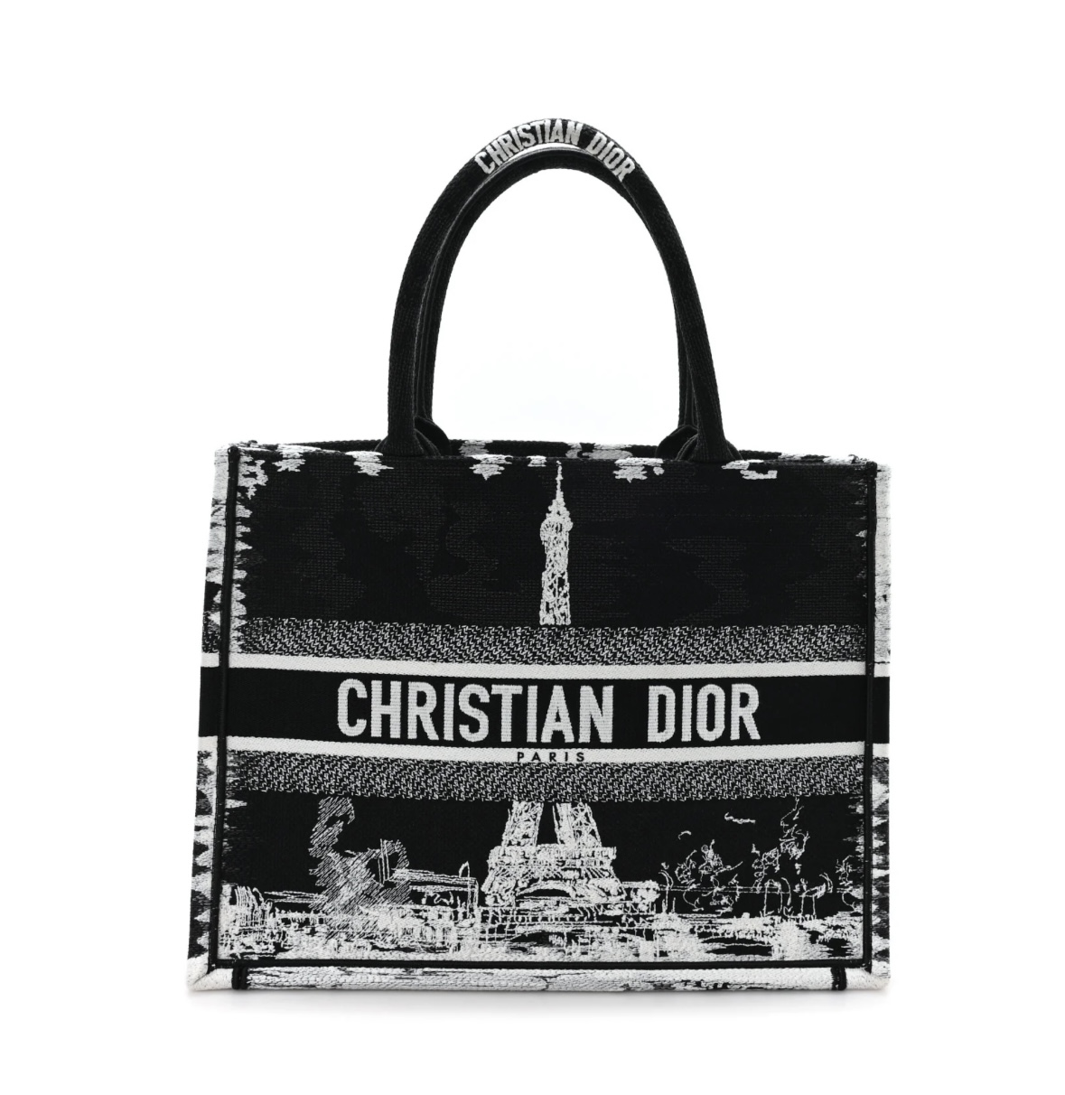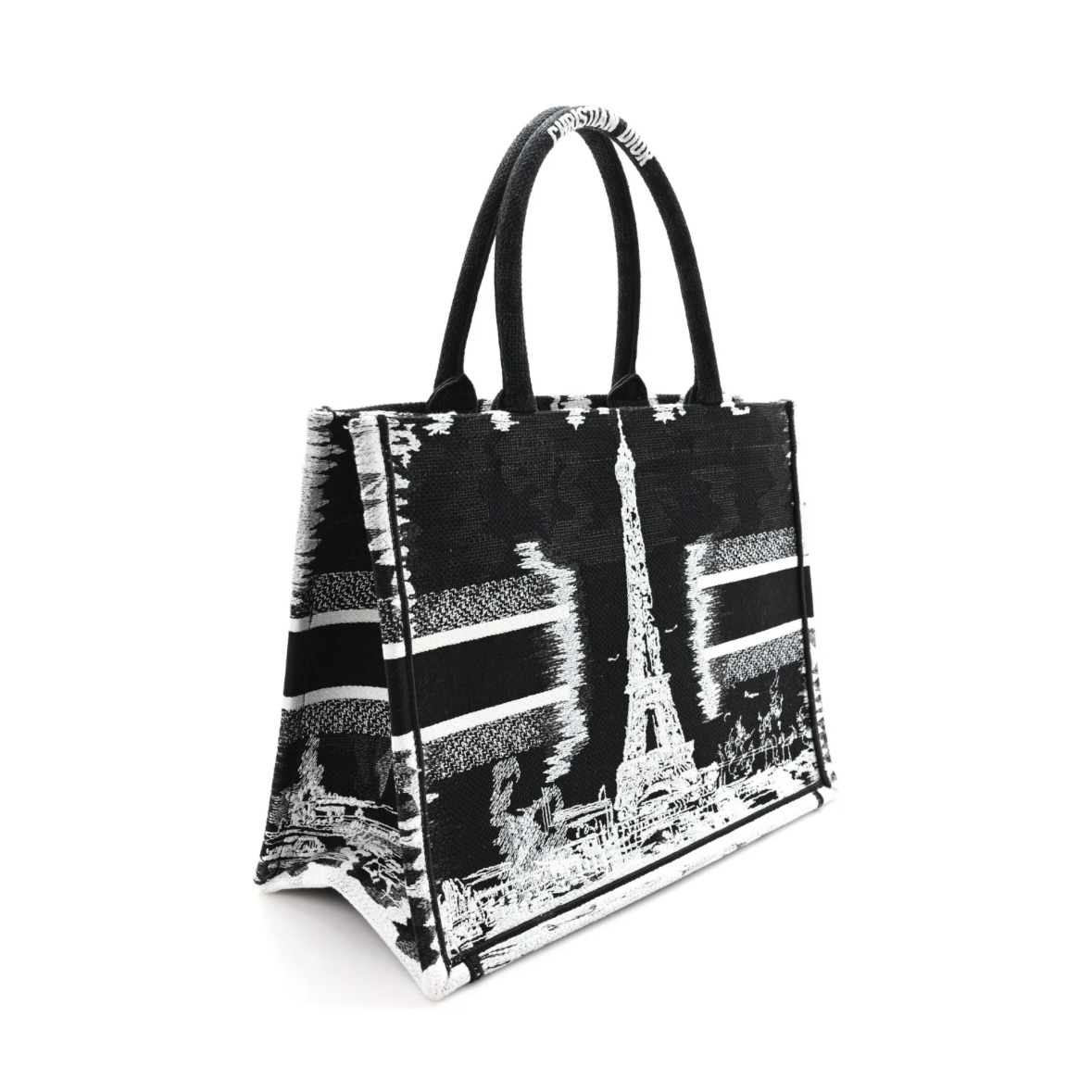 Be the first to review “Canvas Embroidered Medium Paris Book Tote Black White”