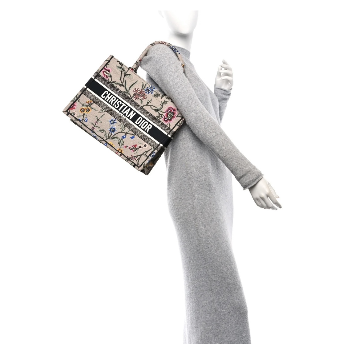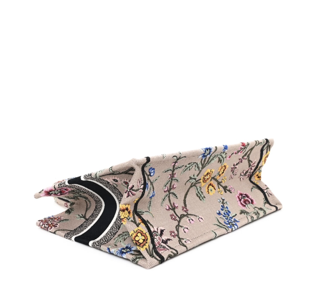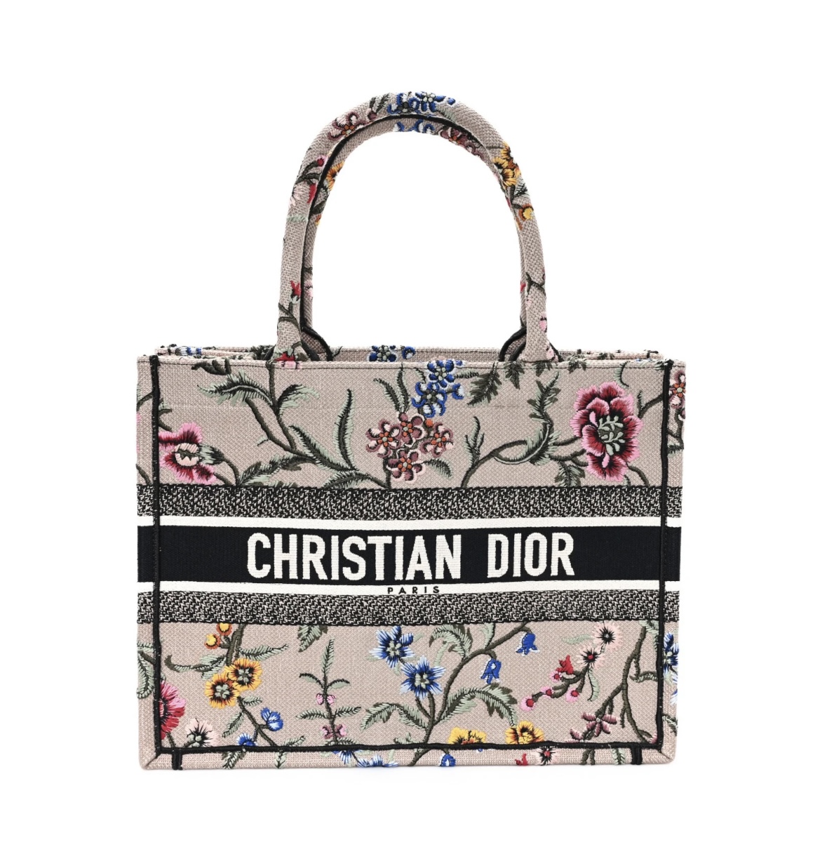 • Material: Premium rose multicolor embroidered canvas, intricate Petites Fleurs floral embroidery, iconic woven signature trim