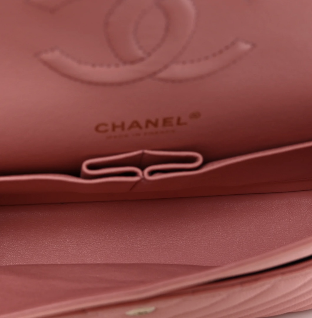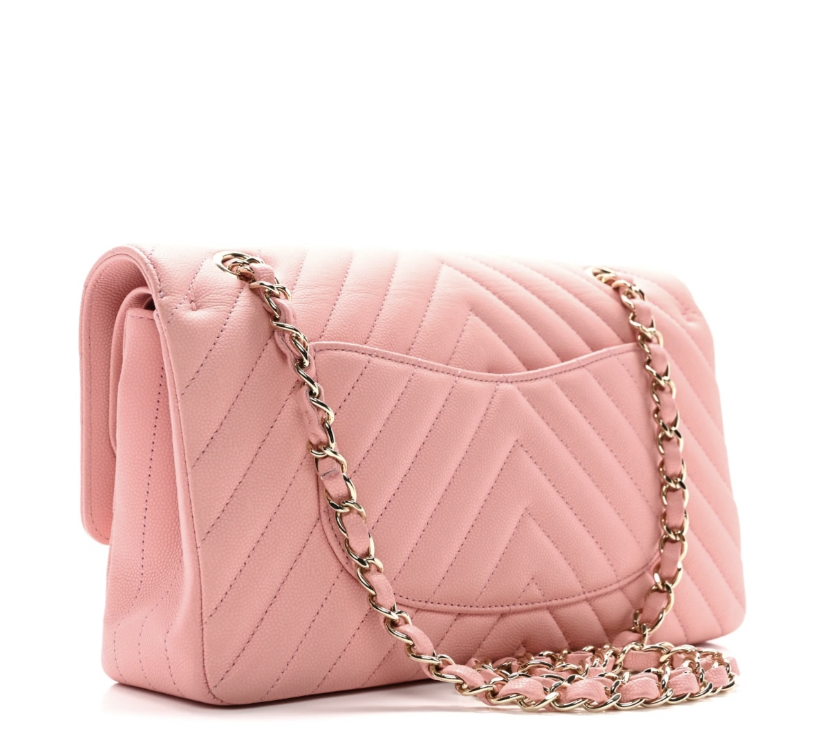 • Model: Caviar Flat Chevron Quilted Medium Double Flap (Pink)- A01112