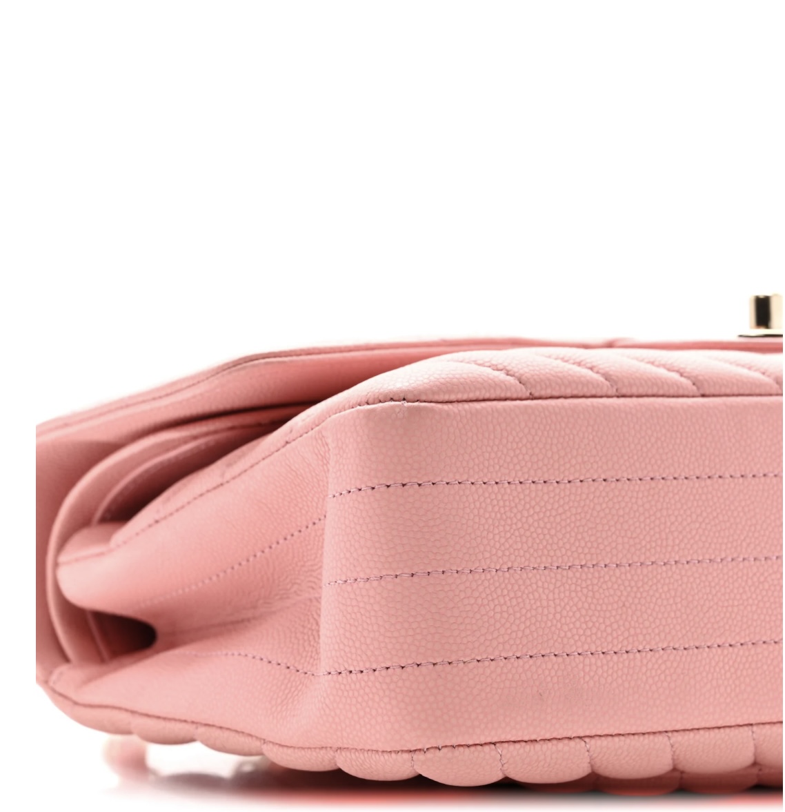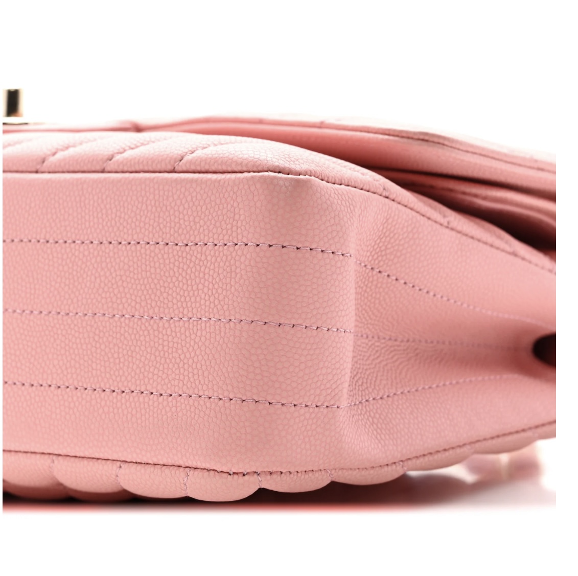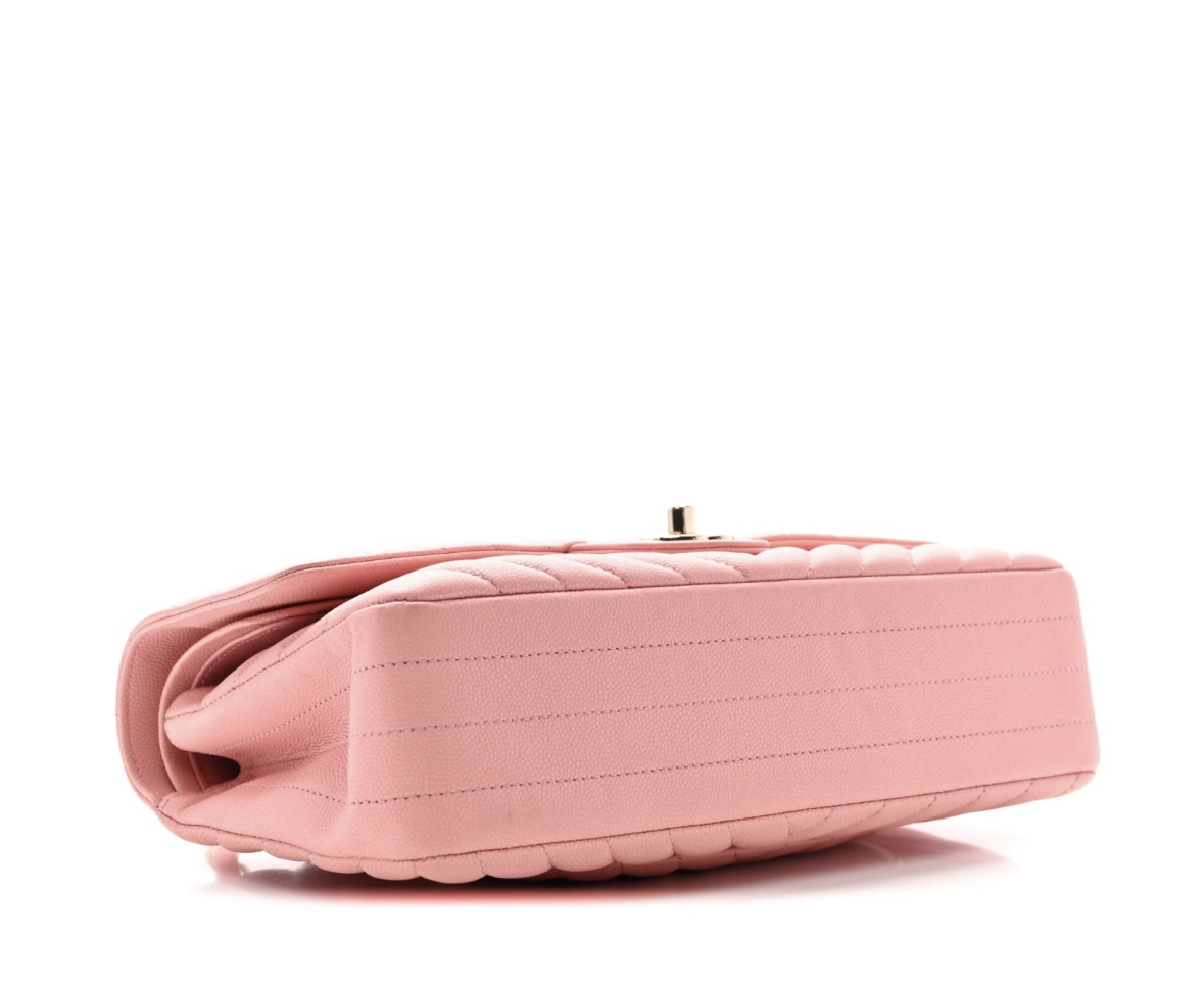 Caviar Flap Chevron Quilted Medium Double Flap Pink