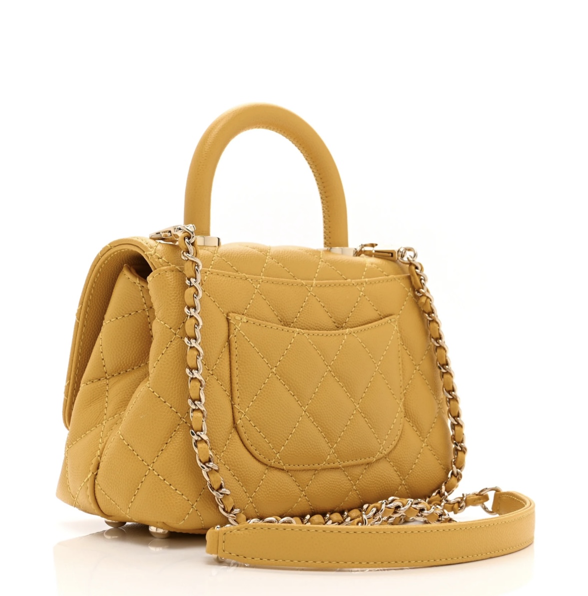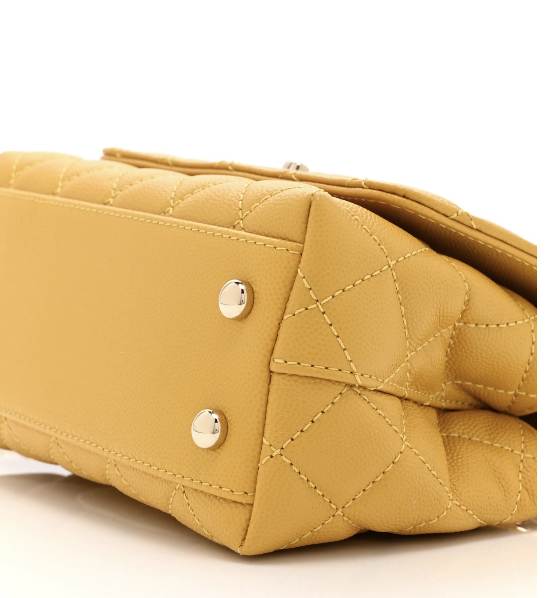 Caviar Quilted Extra Mini Coco Handle Flap Yellow
