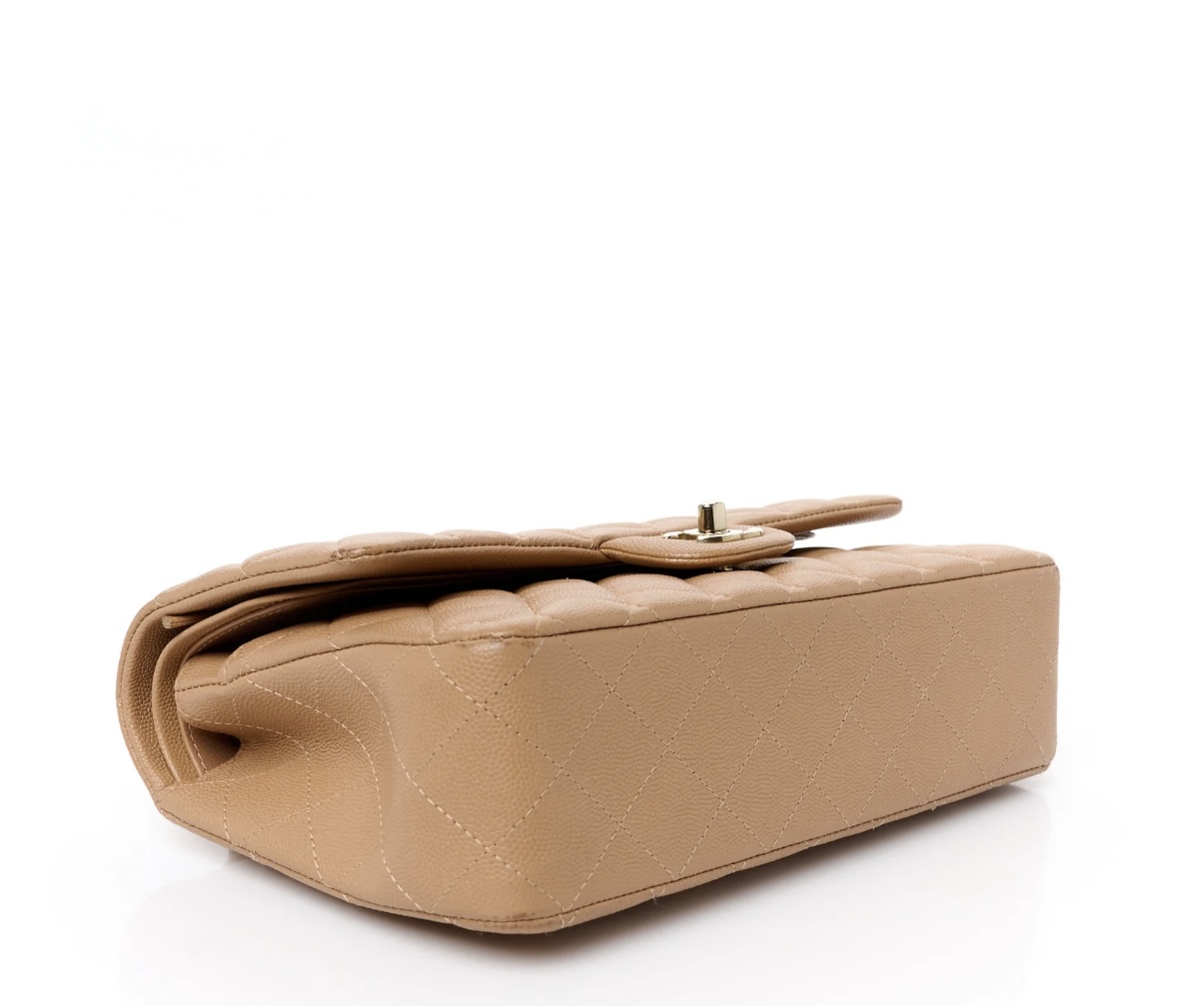 Timeless and versatile, the dark beige caviar leather offers durable luxury with a warm, neutral hue to elevate any outfit. Perfect for shoulder or crossbody wear, ideal for daily outings, business meetings or everyday sophisticated style.