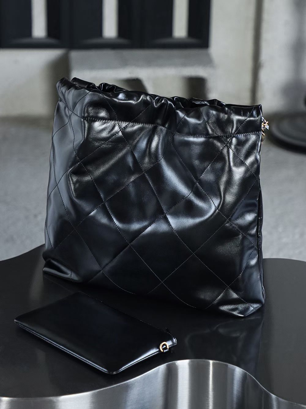 • Iconic Silhouette: The signature slouchy shape, drawstring closure, and adjustable chain strap are recreated with precision, ensuring the same effortless style as the genuine piece.