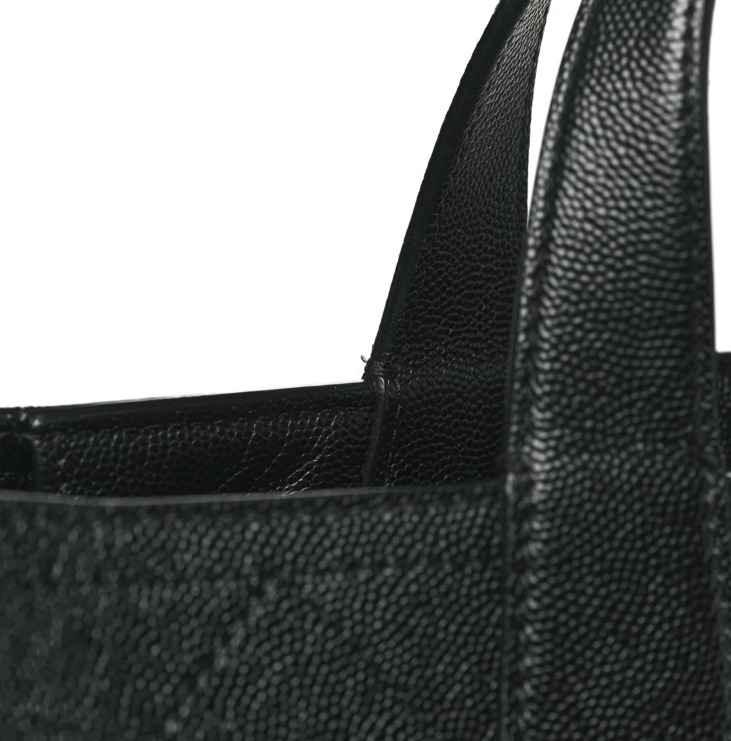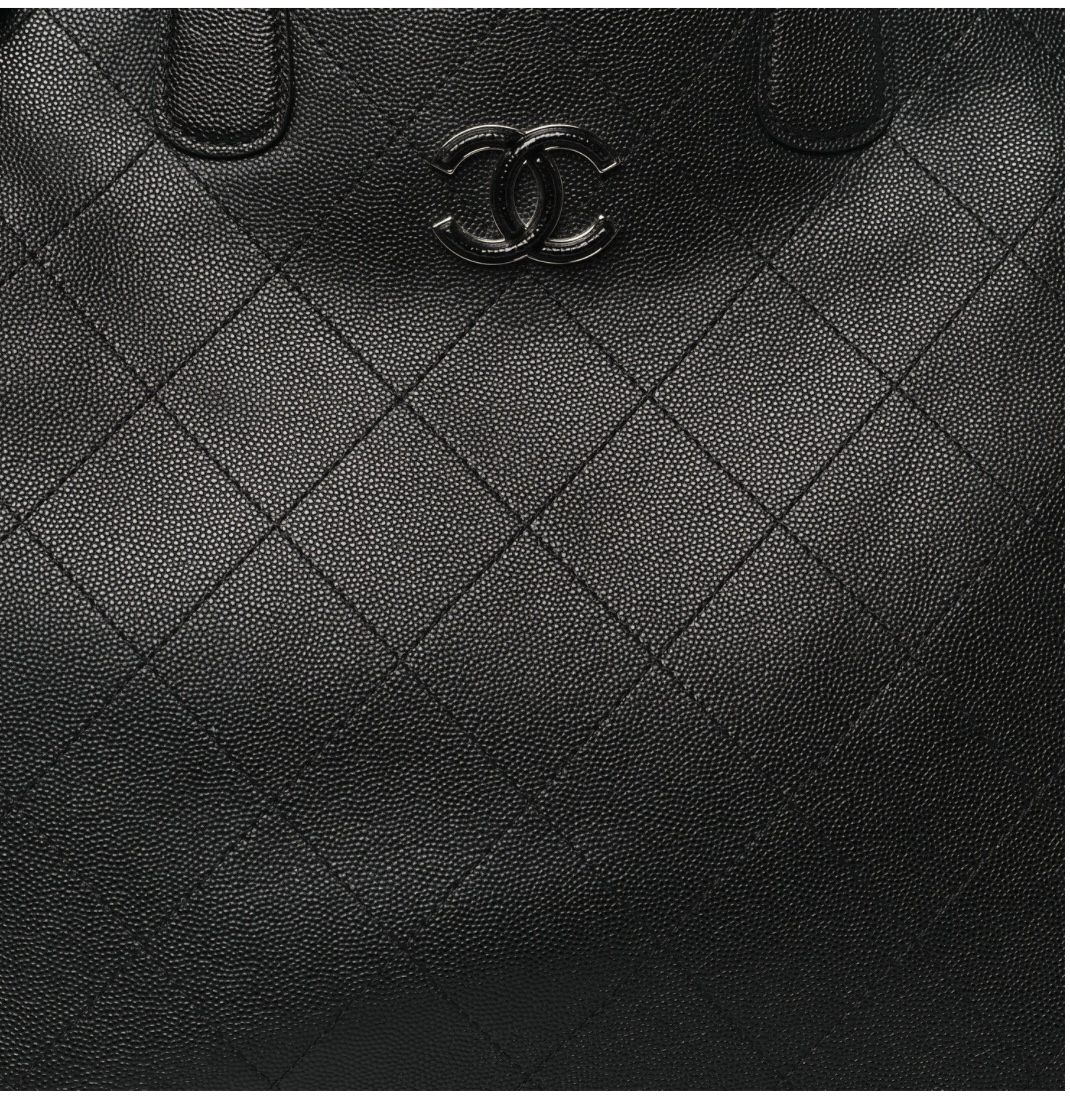 Caviar Stitched Large Lady Coco Shopping Tote Black
