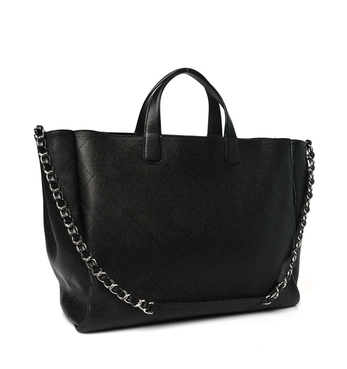 • Craftsmanship: Hand-assembled with precise diamond quilting stitching, seamless edge finishing, and authentic caviar leather texture; features patent leather top handles and signature chain detail