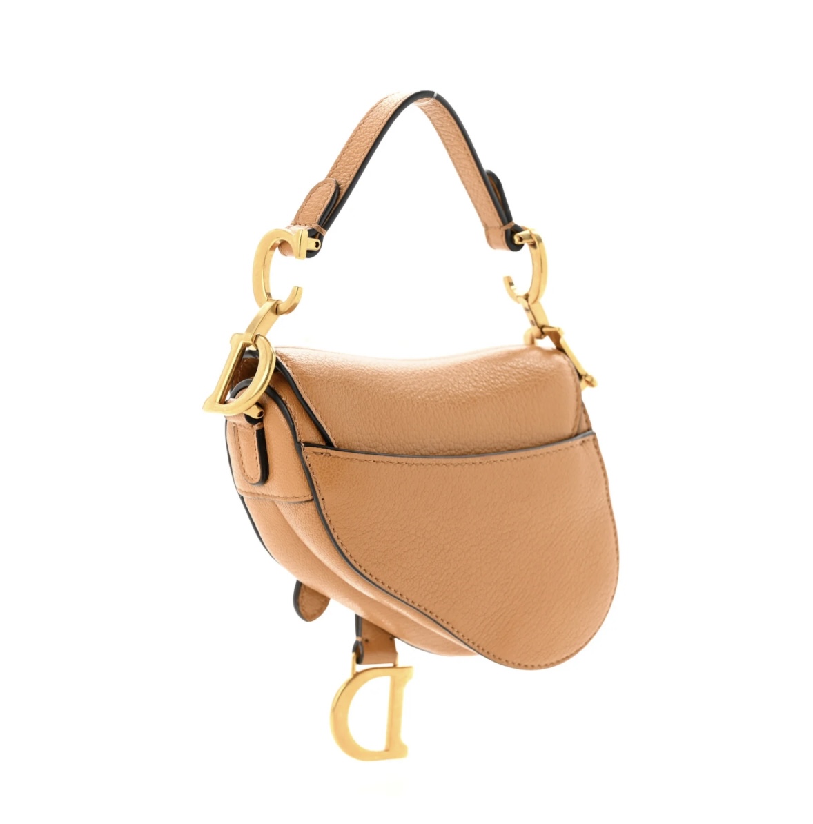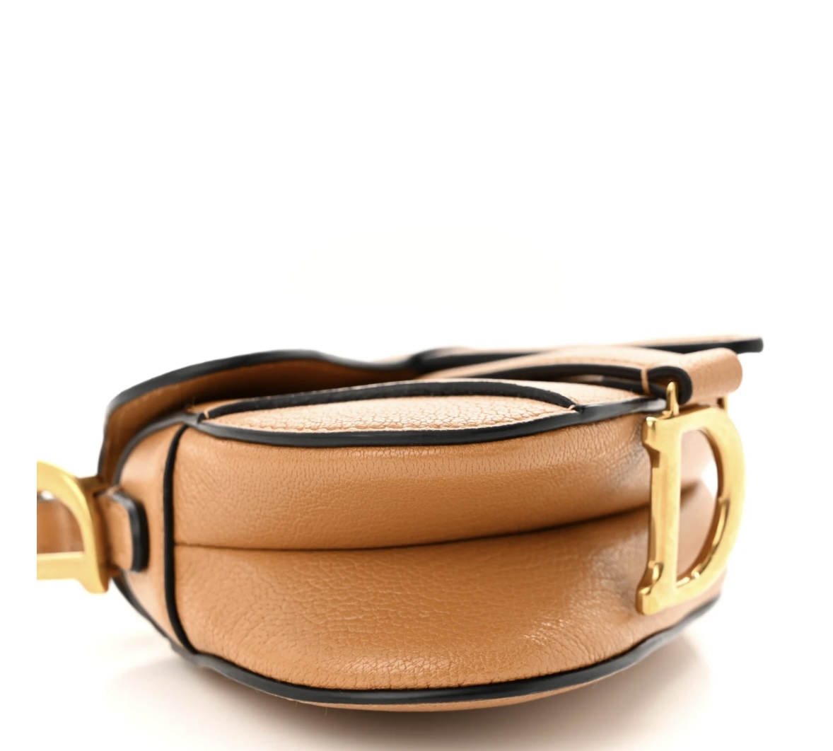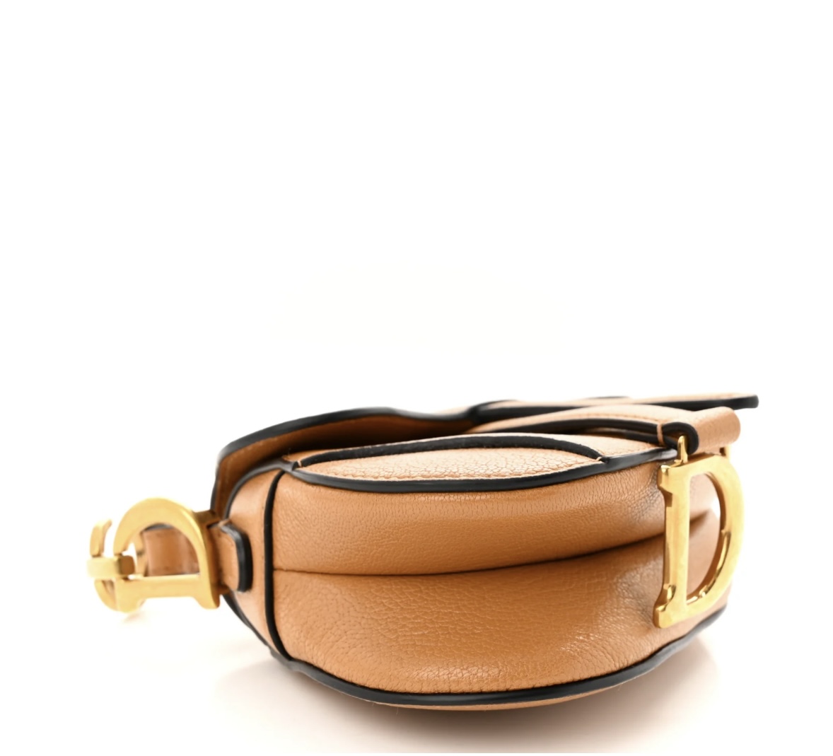 Elegant and compact, the rich Camello tan goatskin brings timeless, versatile luxury to any outfit. The iconic micro saddle shape and gold-tone D-ring accent elevate both casual and formal looks. Perfect for shoulder carry, ideal for evenings out, special occasions, or adding a mini luxury touch to daily looks.