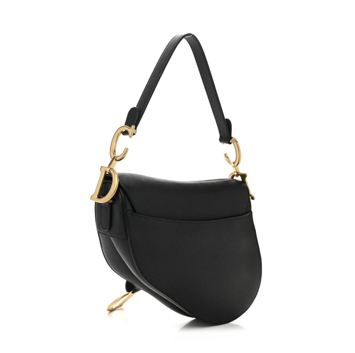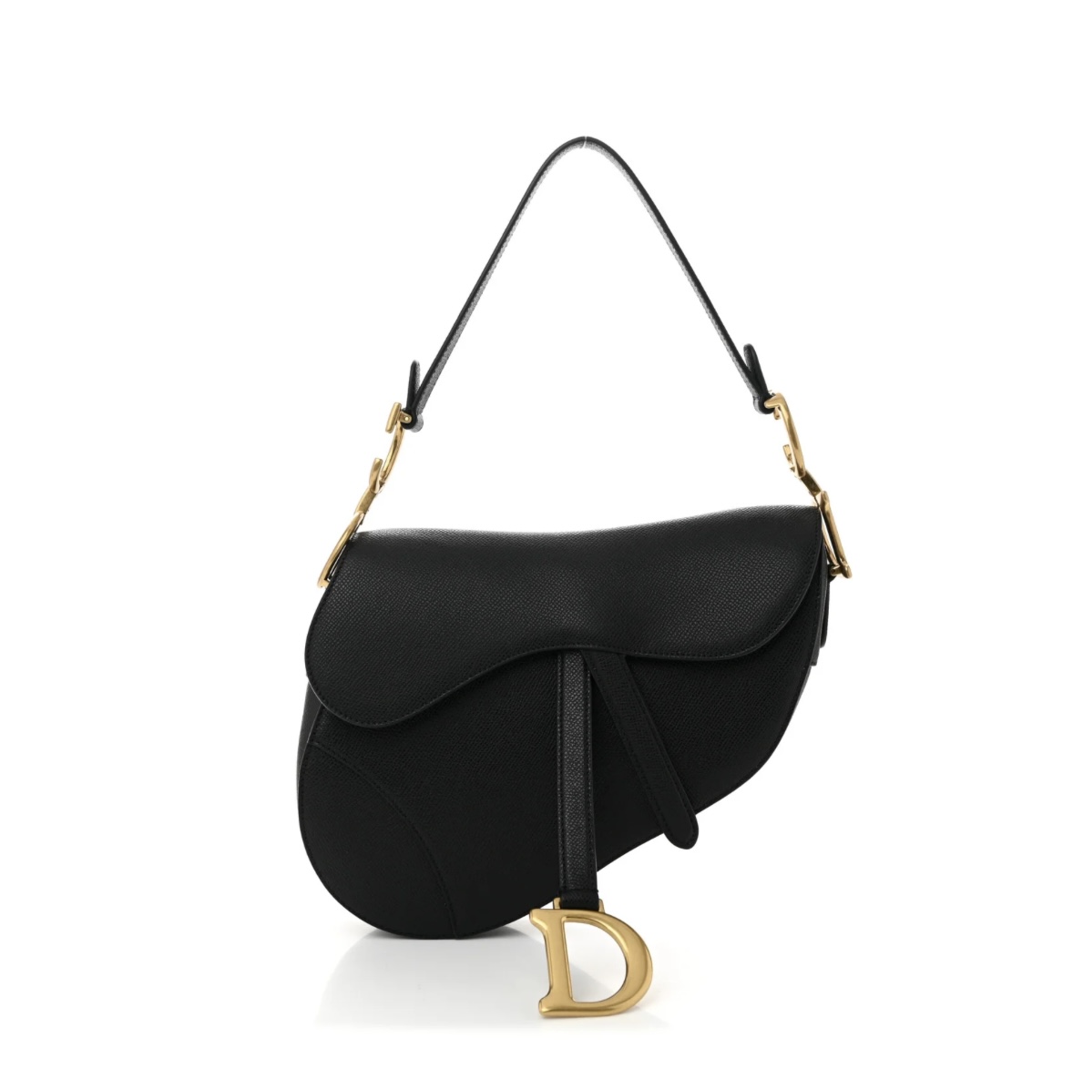 Sleek and sophisticated, the black grained calfskin delivers enduring luxury that complements any outfit. The iconic saddle shape and gold-tone D-ring accent elevate both casual and formal looks. Perfect for shoulder carry, ideal for everyday use, work, dinners, or evening events.