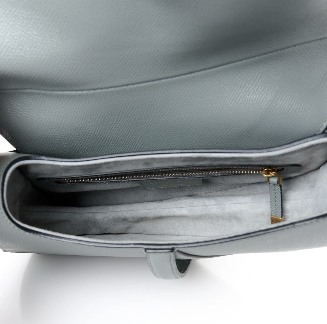 Sophisticated and versatile, the cool Stone Grey grained calfskin brings understated luxury to any outfit. The iconic saddle shape and branded webbing strap add a modern, casual edge, perfect for balancing elegance and everyday practicality. Ideal for shoulder or crossbody carry, great for work, weekends, or travel.