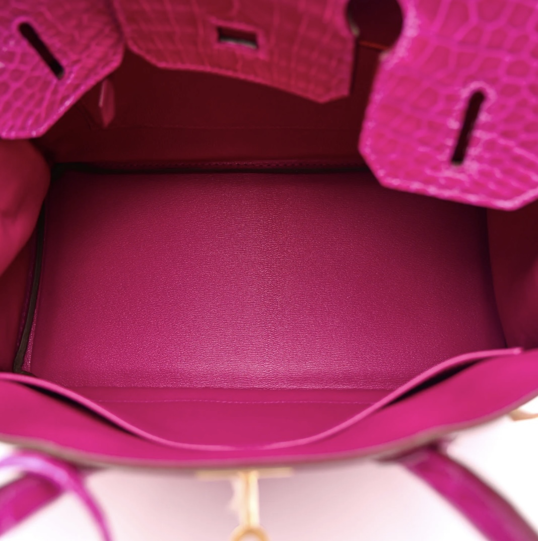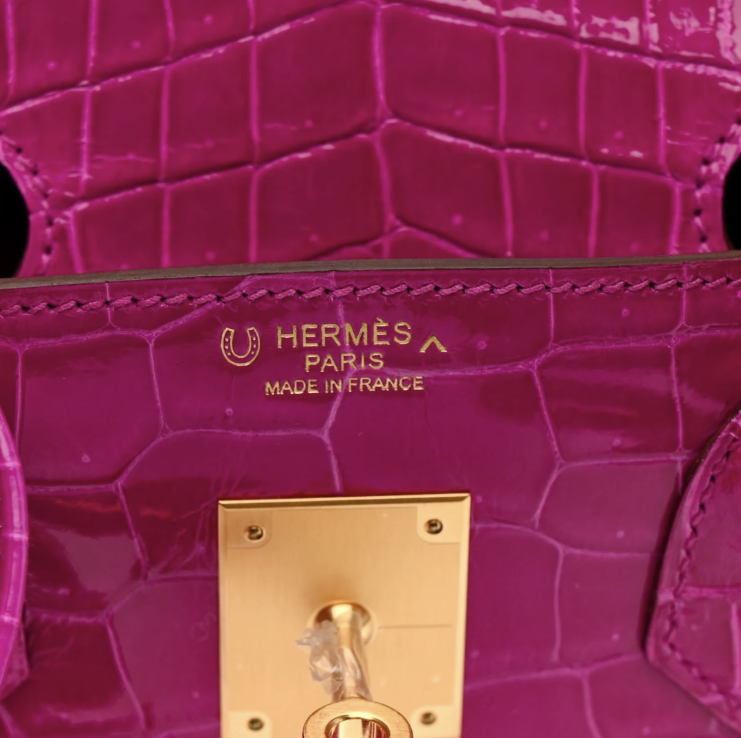• Model: Shiny Porosus Crocodile Horseshoe Birkin 30 (Rose Scheherazade)