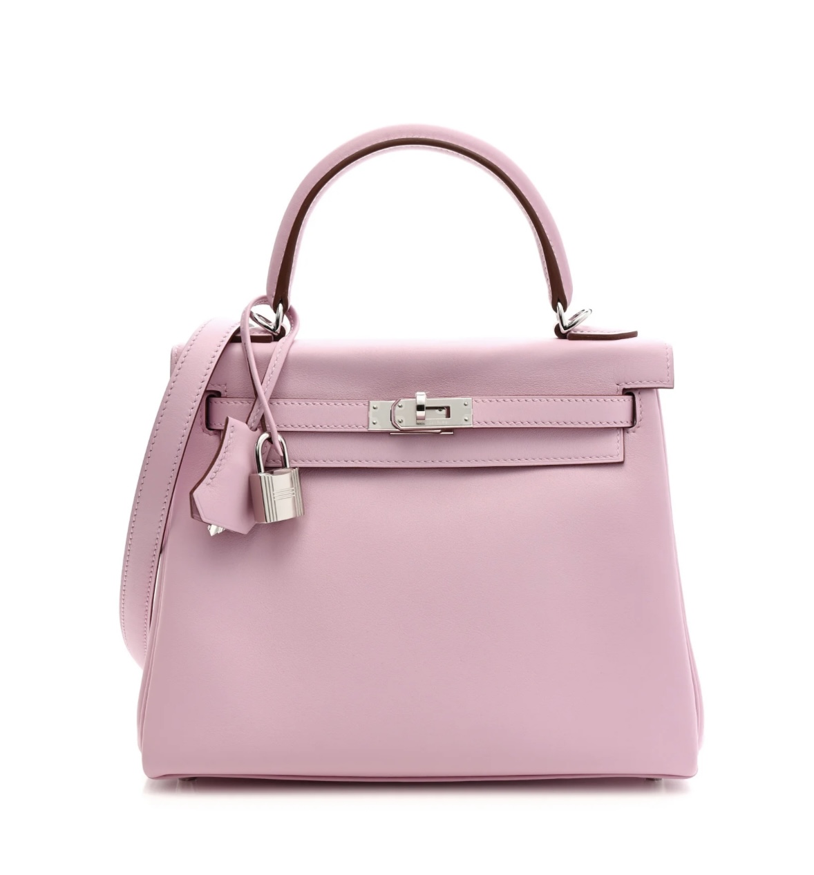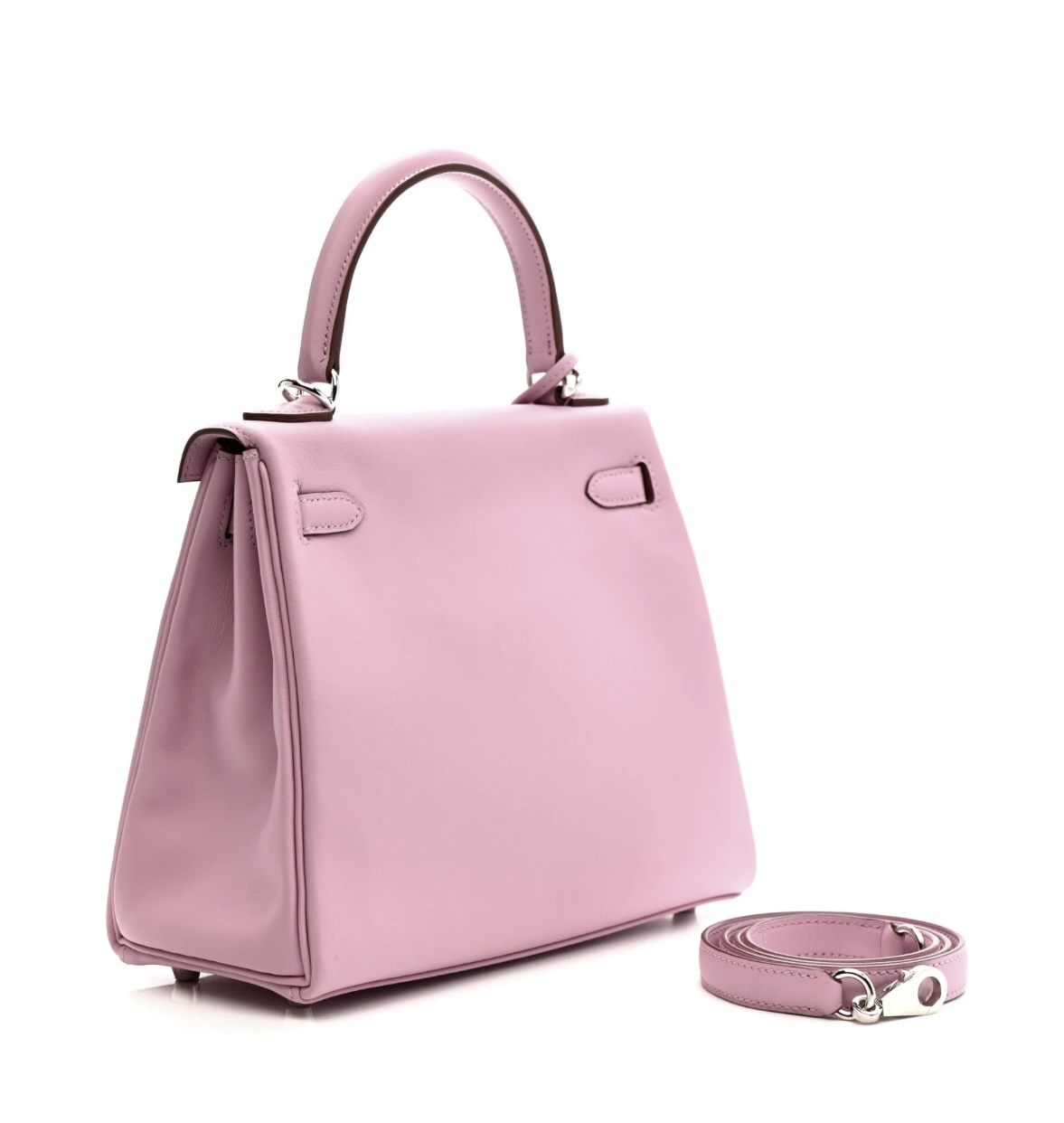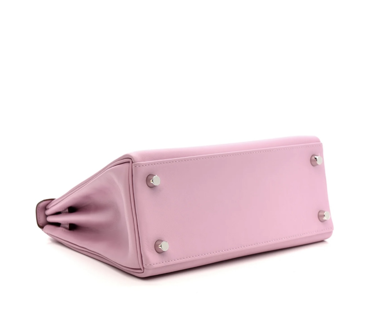 • Material: Premium Swift Calfskin (Smooth & Soft texture), detachable adjustable Mauve Sylvestre leather shoulder strap, polished Palladium silver-tone metal hardware.