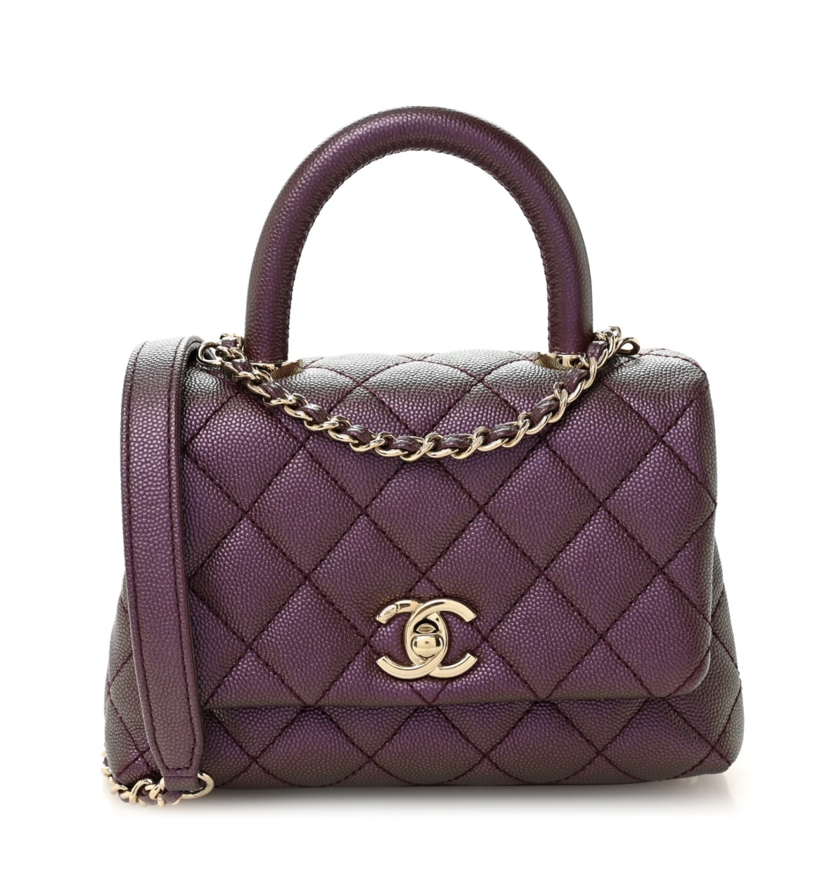 • Model: Iridescent Caviar Quilted Extra Mini Coco Handle Flap (Purple)AS3215-B10591-N6746