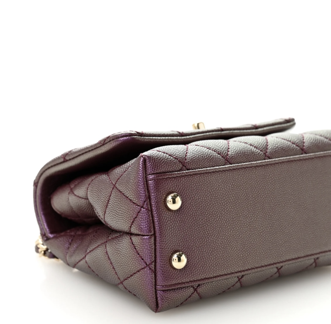 Iridescent Caviar Quilted Extra Mini Coco Handle Flap Purple