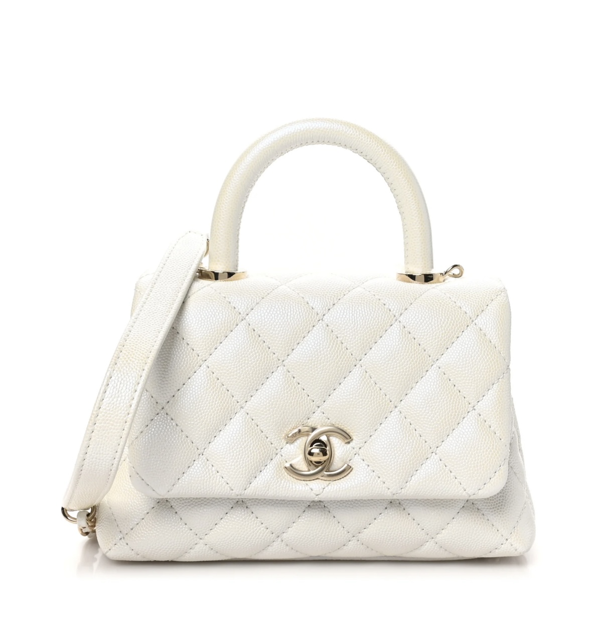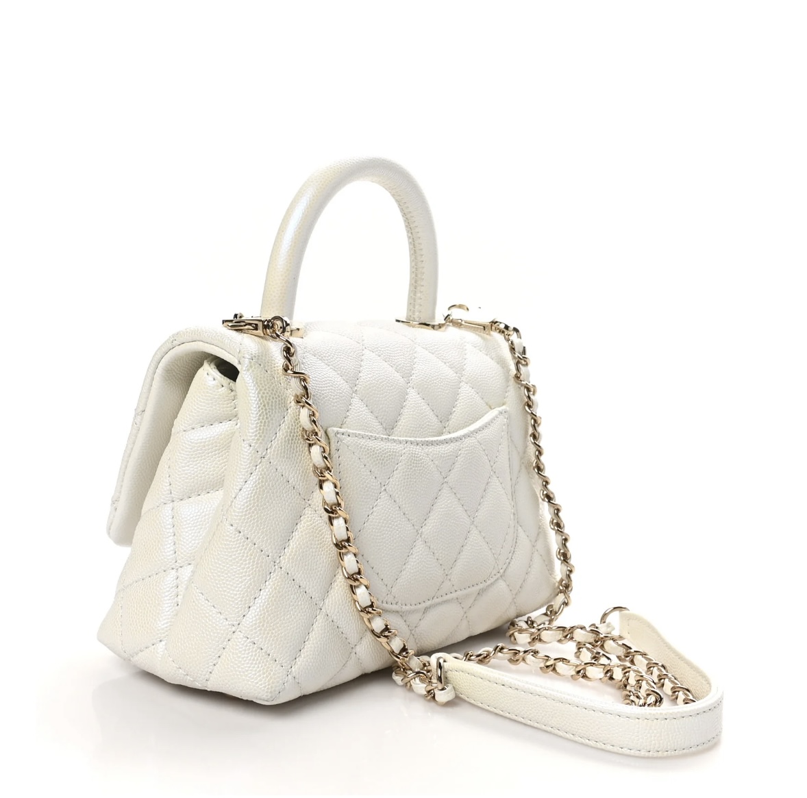 • Model: Iridescent Caviar Quilted Extra Mini Coco Handle Flap (White)AS3215-B10591-N6750