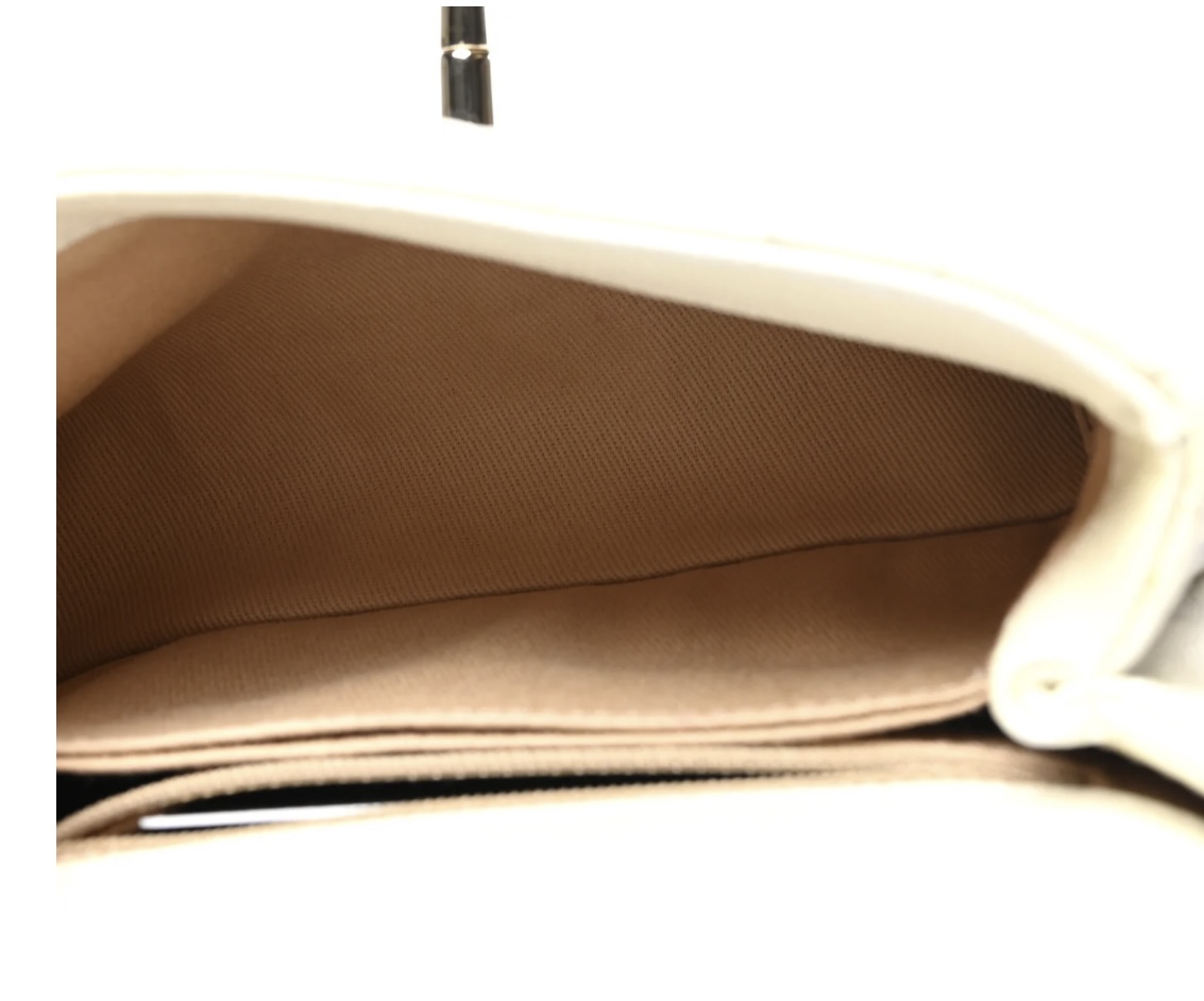 Ethereal and luminous, the iridescent white caviar leather offers durable luxury with a soft, pearlescent sheen to elevate any outfit. Perfect for hand carry, shoulder or crossbody wear, ideal for bridal events, spring occasions, brunch or everyday sophisticated style.