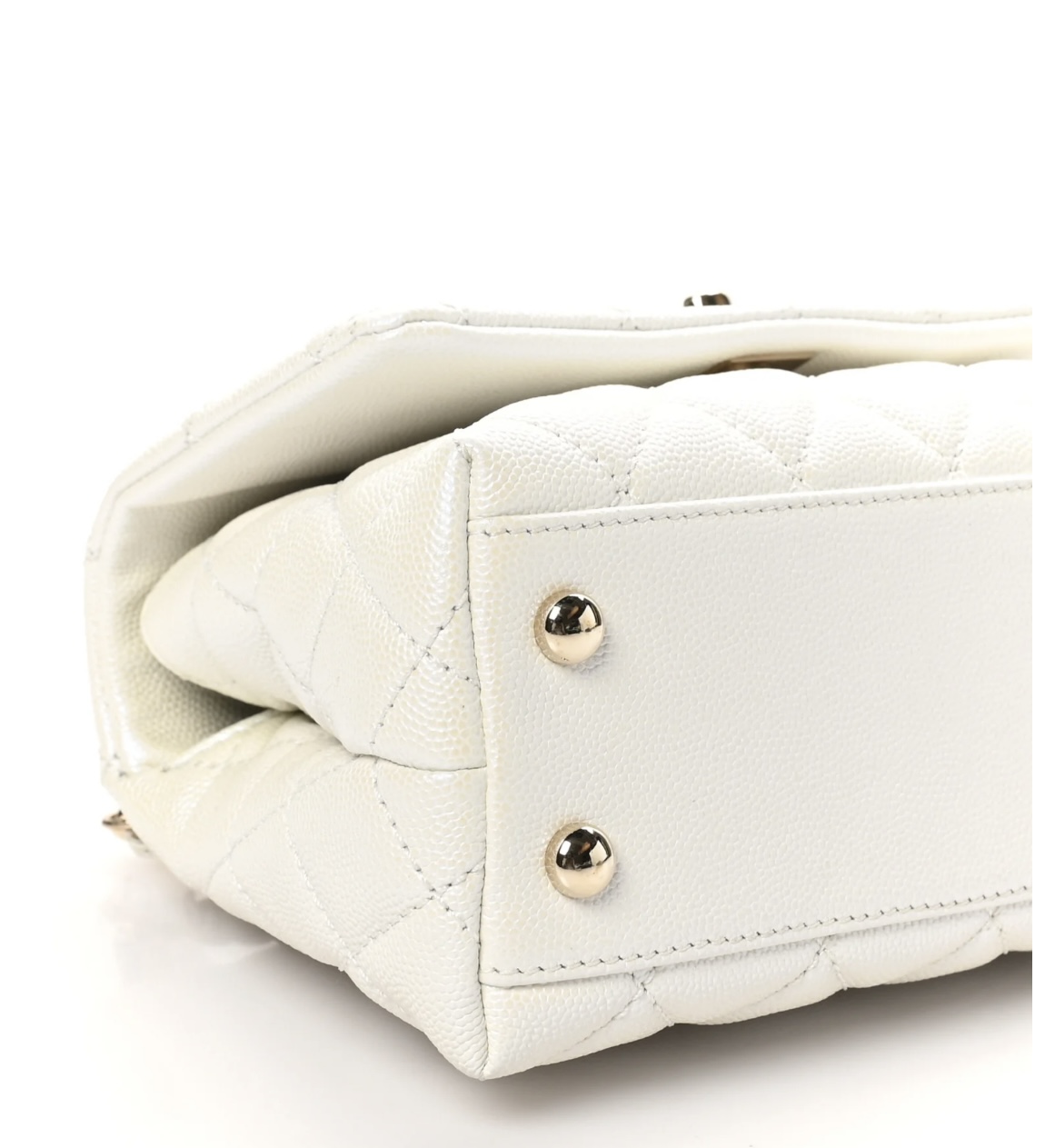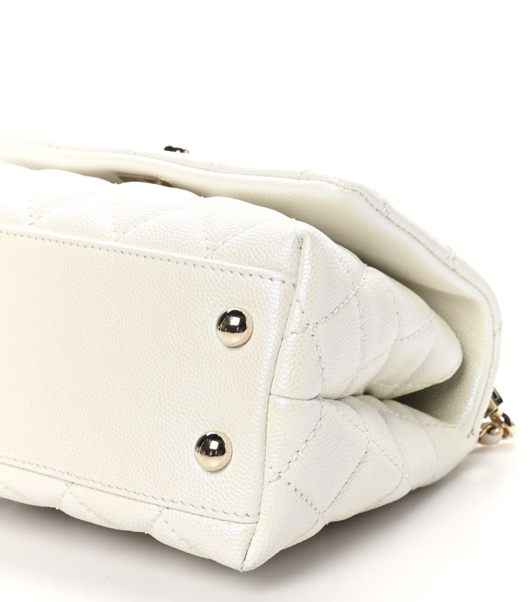 Iridescent Caviar Quilted Extra Mini Coco Handle Flap White
