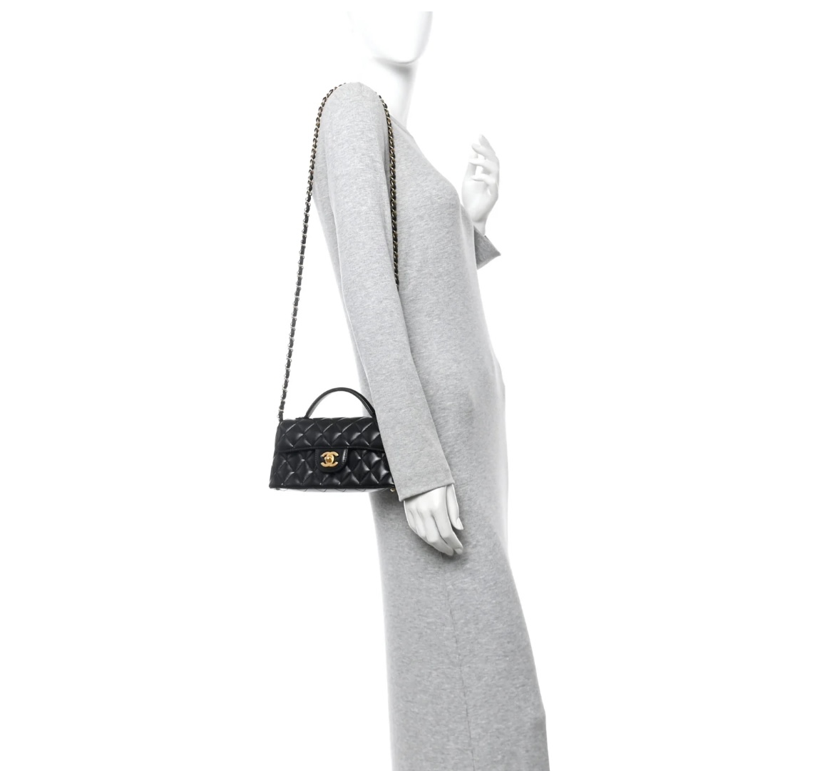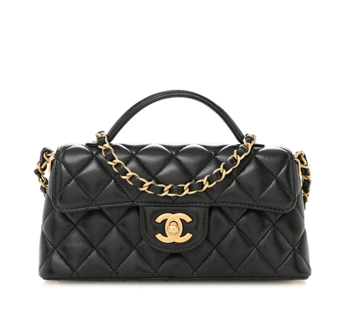 • Features: Classic diamond quilting, flap design, detachable leather-chain shoulder strap, top handle, CC turn-lock closure, interior zip pocket & slip pocket