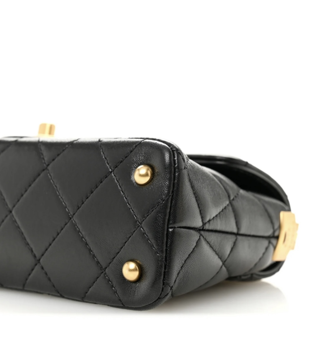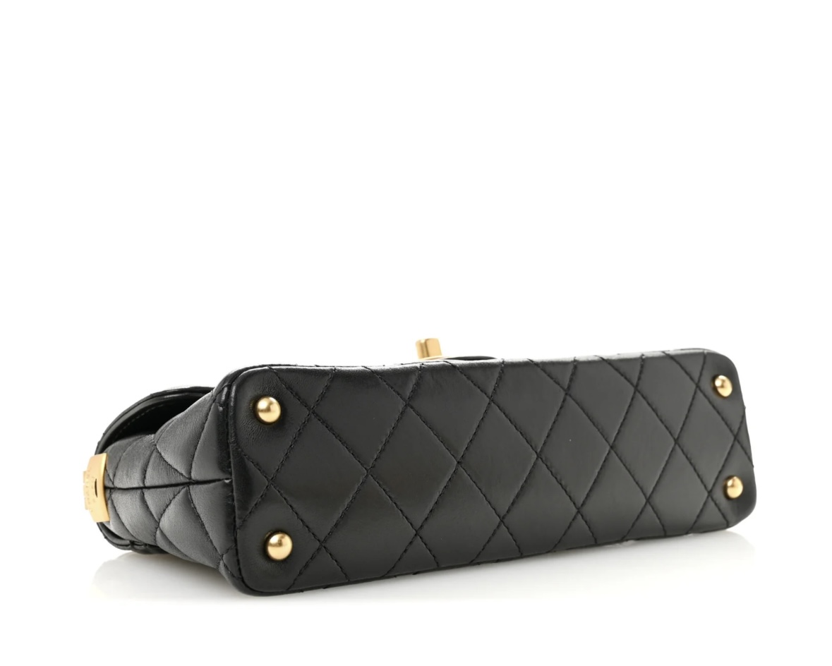 Lambskin Quilted Mini Flap Handle Bag Black