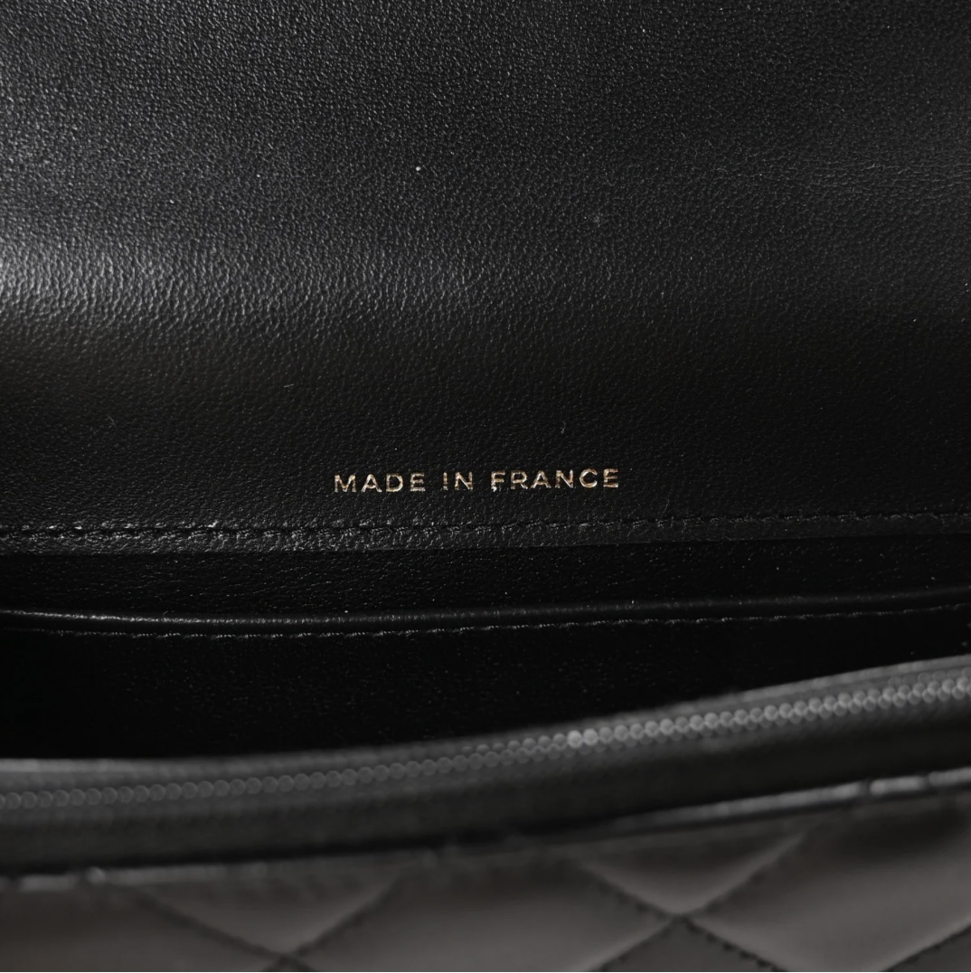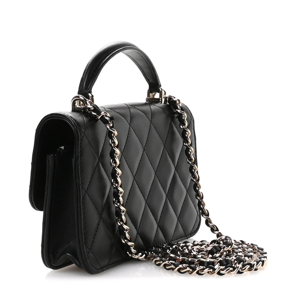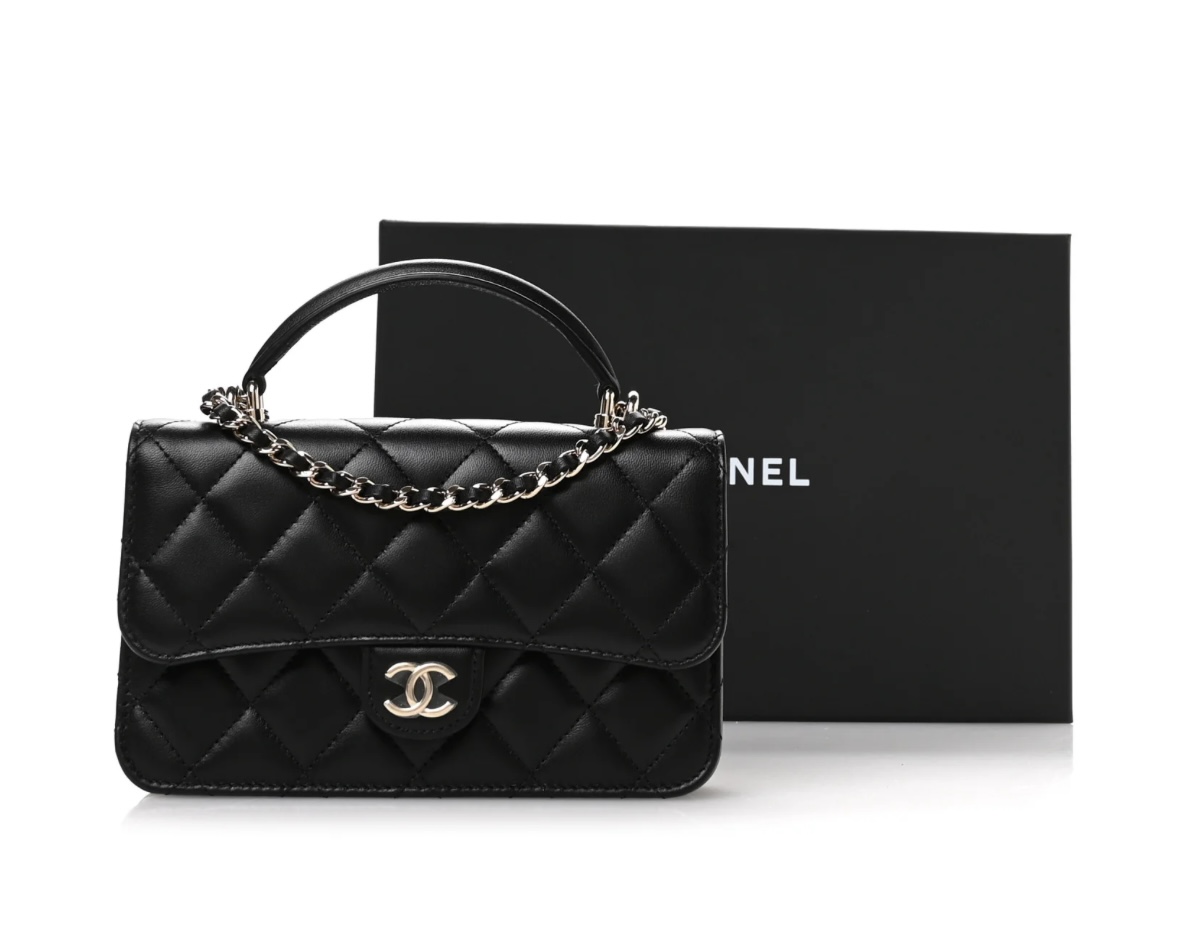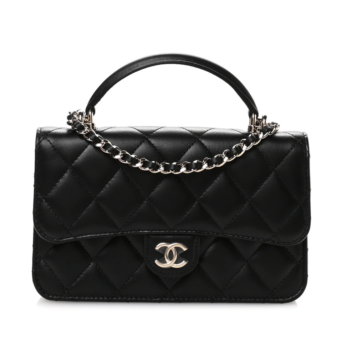 Lambskin Quilted Mini Flap Phone Holder With Chain Black