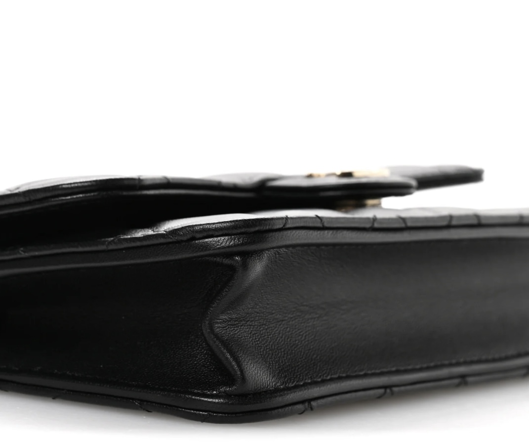 Sleek and compact, the black lambskin leather delivers soft luxury with a polished finish to elevate any outfit. Perfect for hand, shoulder or crossbody wear, ideal for carrying your phone and essentials on nights out, casual outings or everyday chic style.