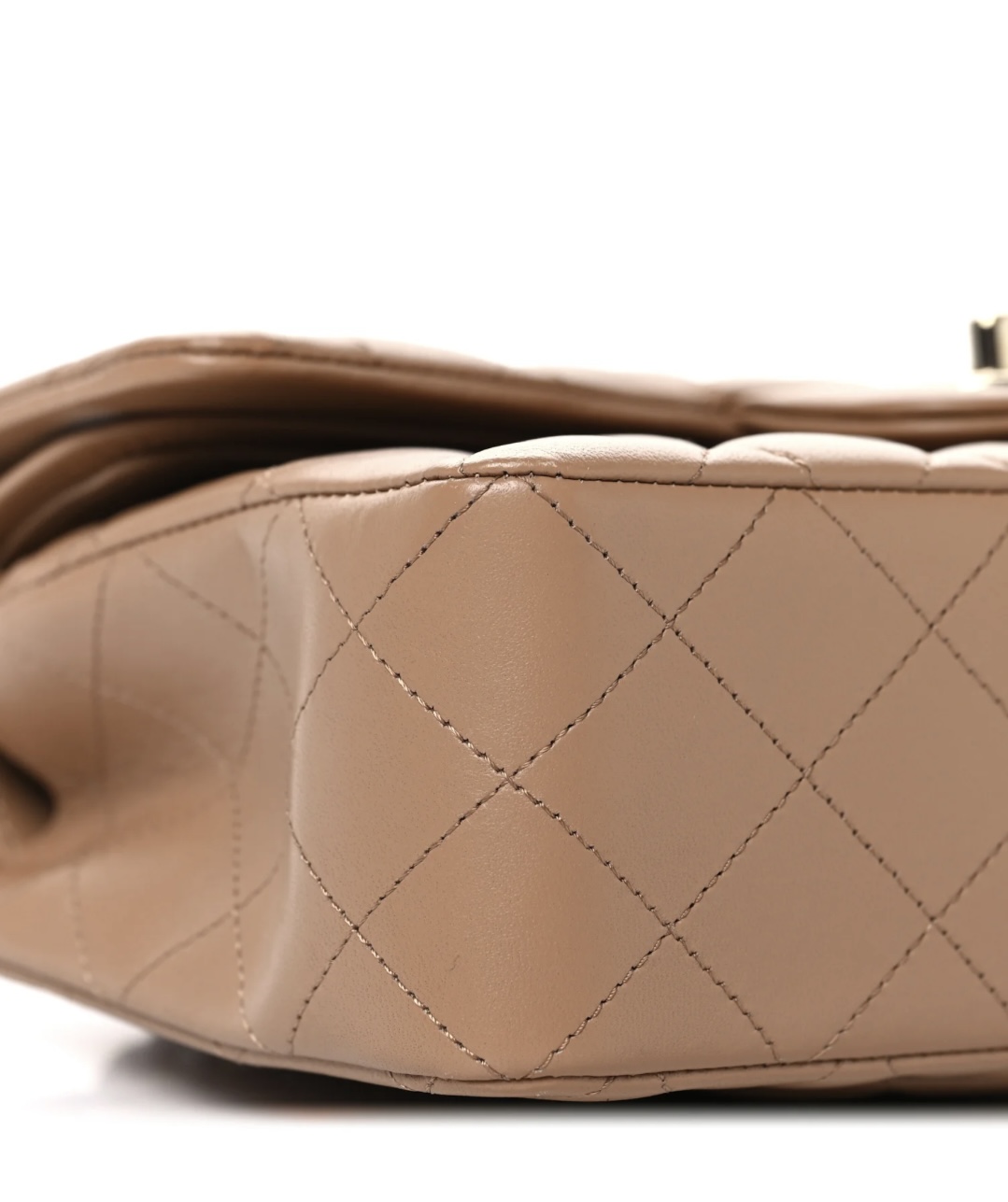 Lambskin Quilted Bi-Color Mini Top Handle Rectangular Flap Light Brown Yellow