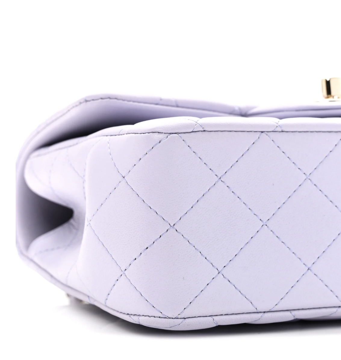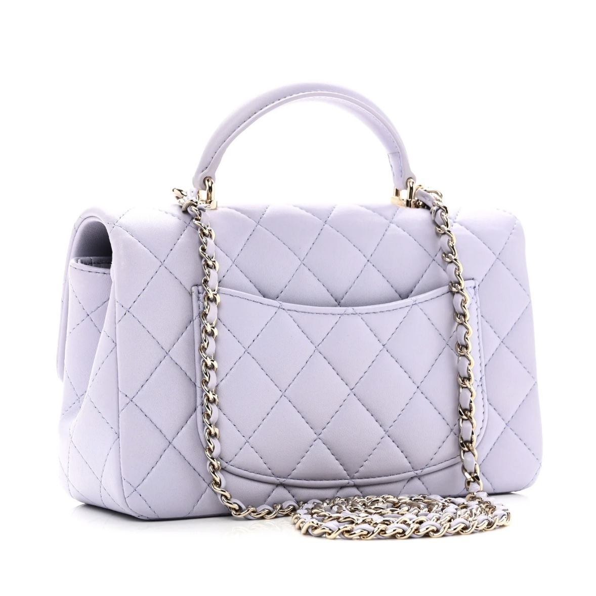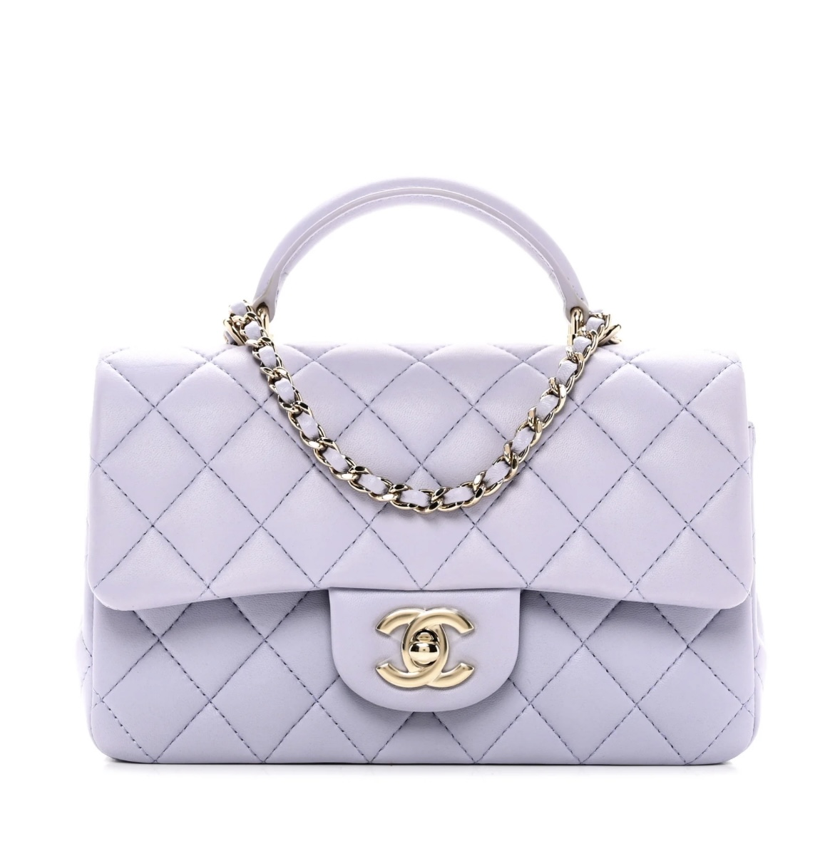 Lambskin Quilted Mini Top Handle Rectangular Flap Light Purple