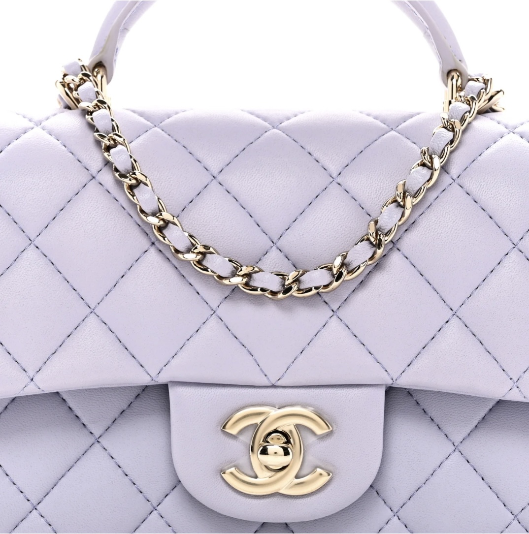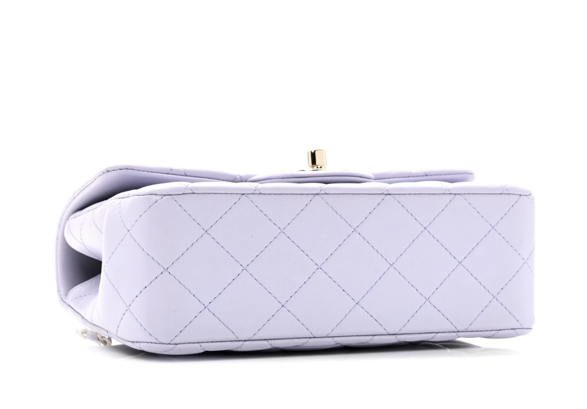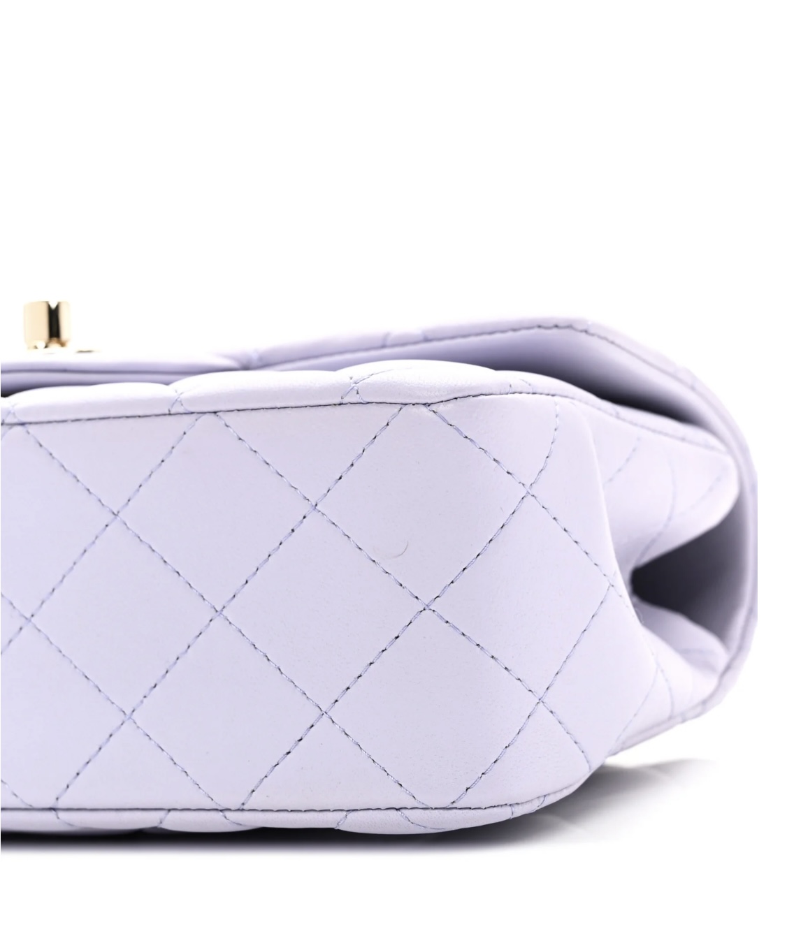 Lambskin Quilted Mini Top Handle Rectangular Flap Light Purple