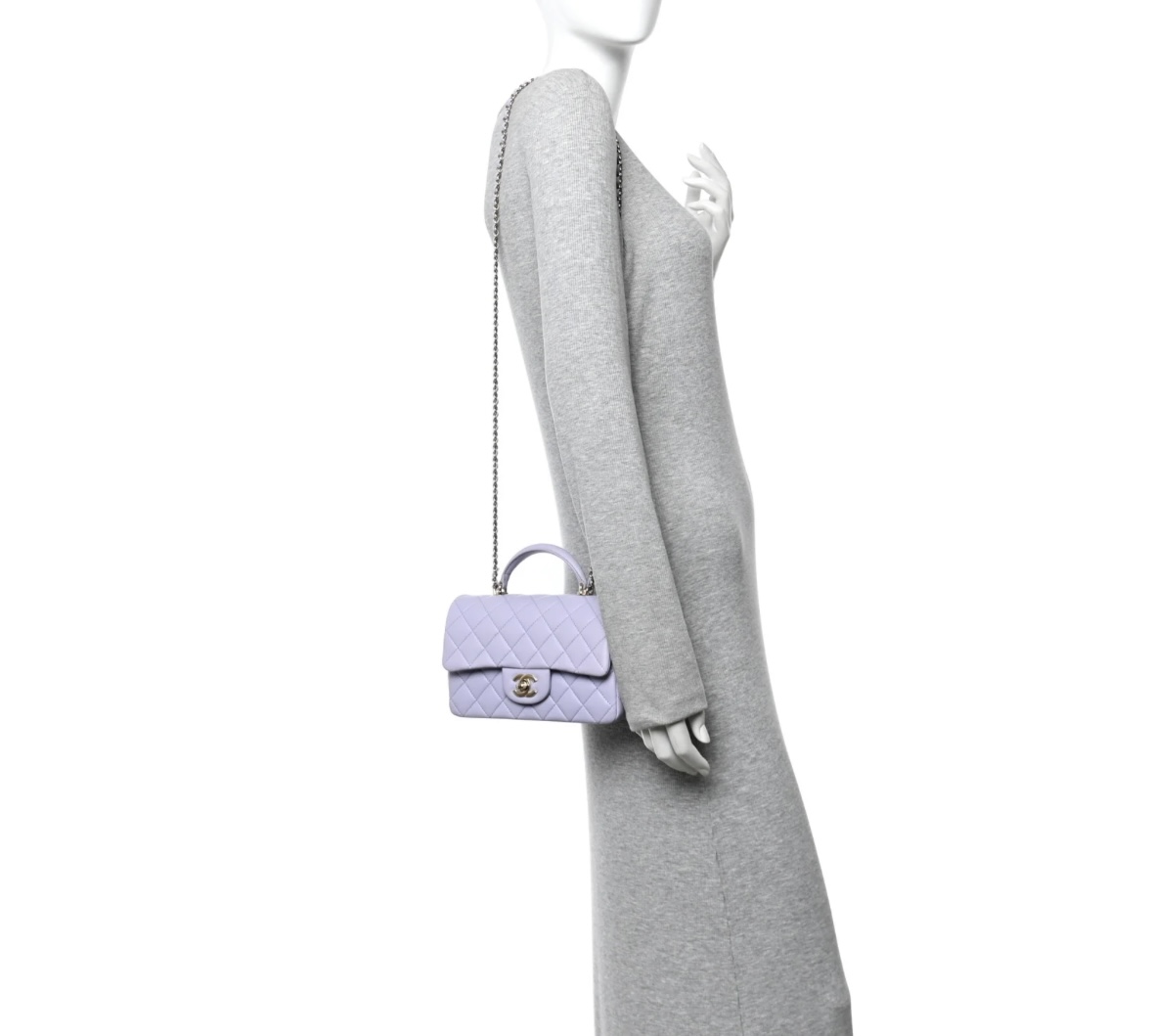 Be the first to review “Lambskin Quilted Mini Top Handle Rectangular Flap Light Purple”