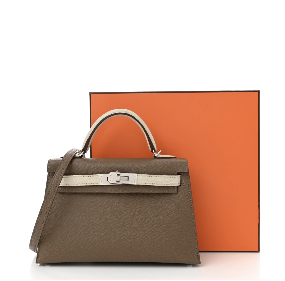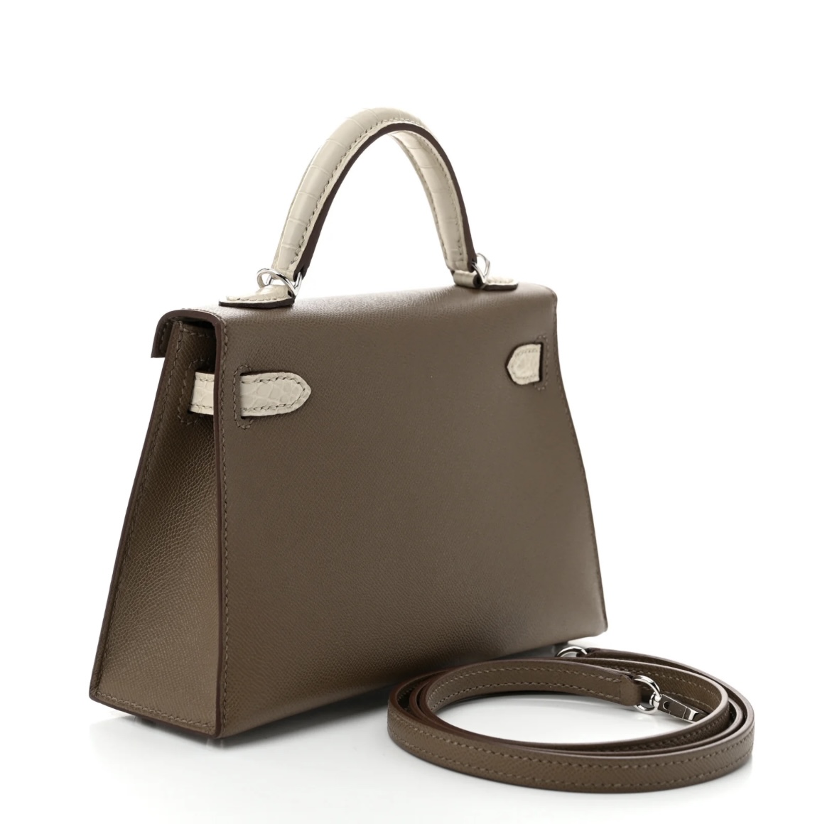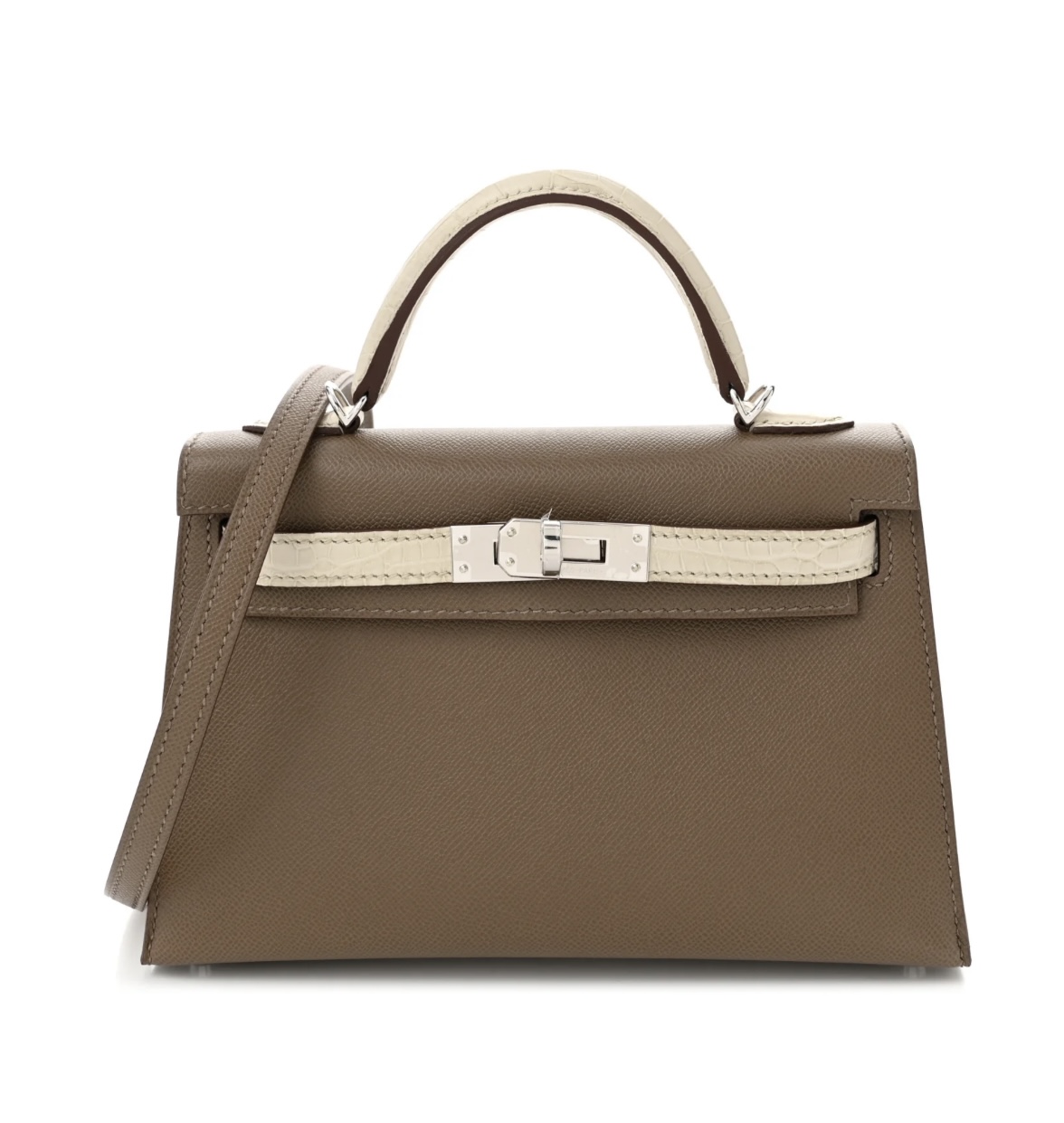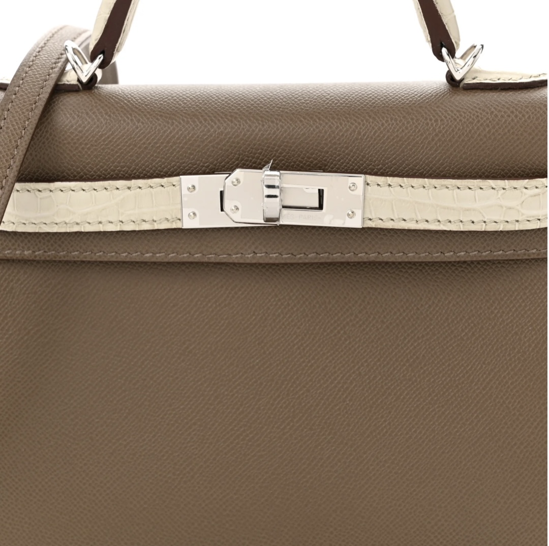 Exclusively sophisticated, the Etoupe & Beton color combination delivers understated luxury with a striking contrast. The blend of smooth Madame calfskin and matte alligator trim creates a textured, high-end aesthetic that commands attention. Perfect for high-profile events, formal occasions, or elevating your everyday luxury look, this Touch Mini Kelly is the ultimate status symbol.