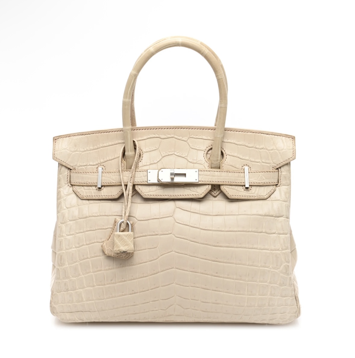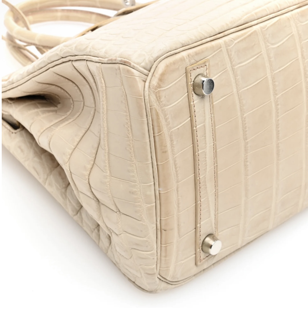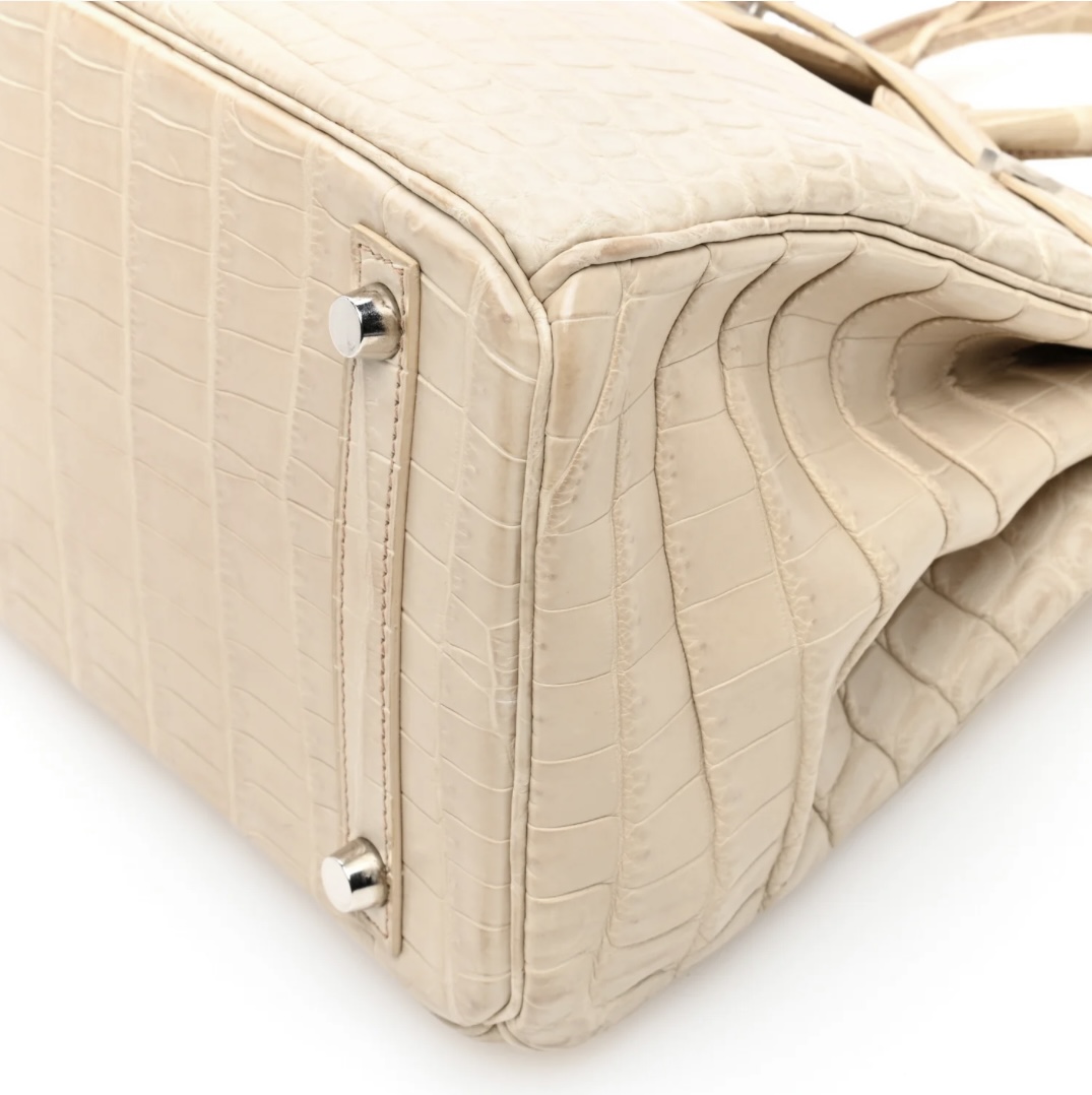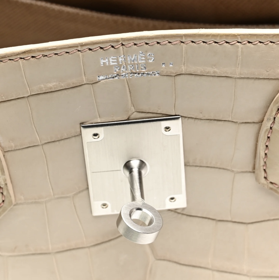 • Craftsmanship: Hand-assembled with precise saddle stitching, seamless edge finishing, and luxurious matte crocodile finish; structured yet supple silhouette with the legendary Birkin turn-lock and strap closure