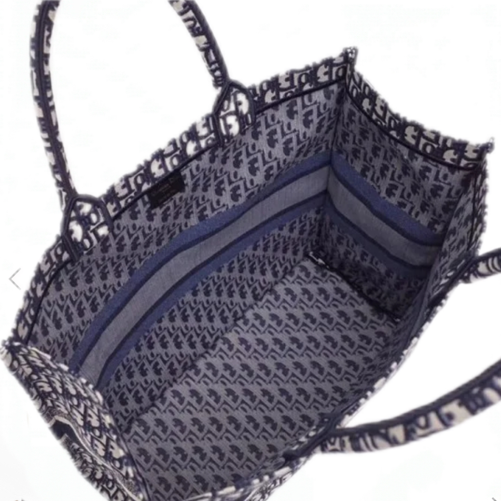 Replica Dior Book Tote Medium Blue Oblique Embroidery