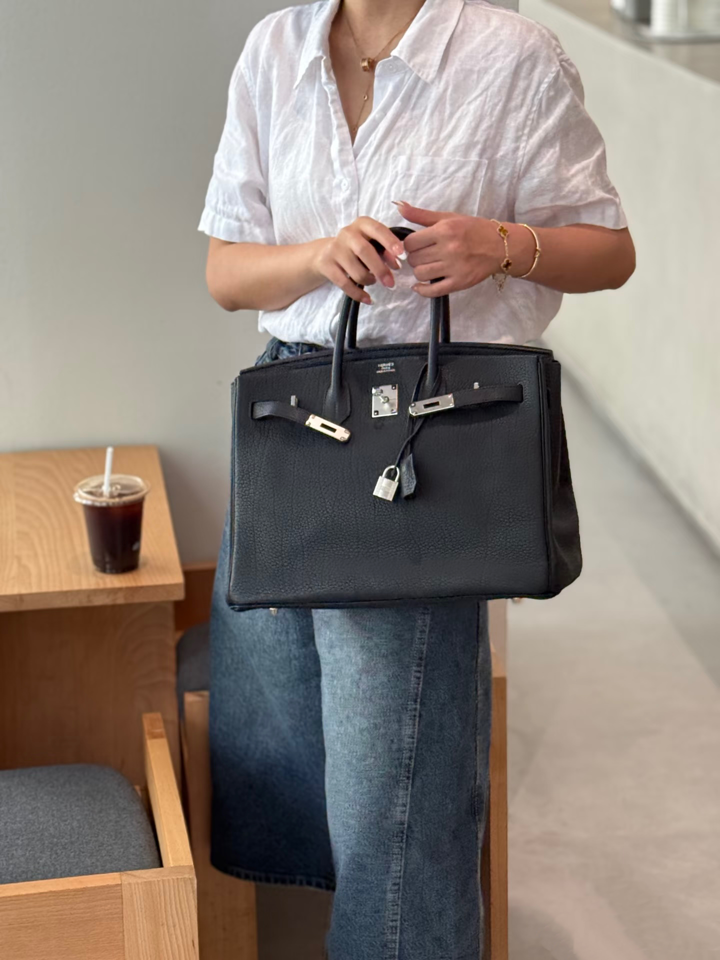 Replica Hermès Birkin 30 Black Handbag Sliver Hardware Togo Leather