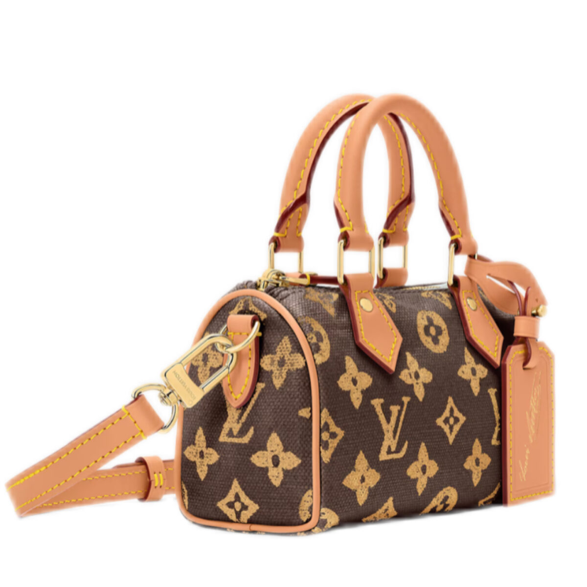 Material: Premium Monogram Origine with authentic Louis Vuitton iconic monogram texture, classic brown base & golden monogram motifs, paired with natural cowhide leather trims (handles, edges, strap, and luggage tag)