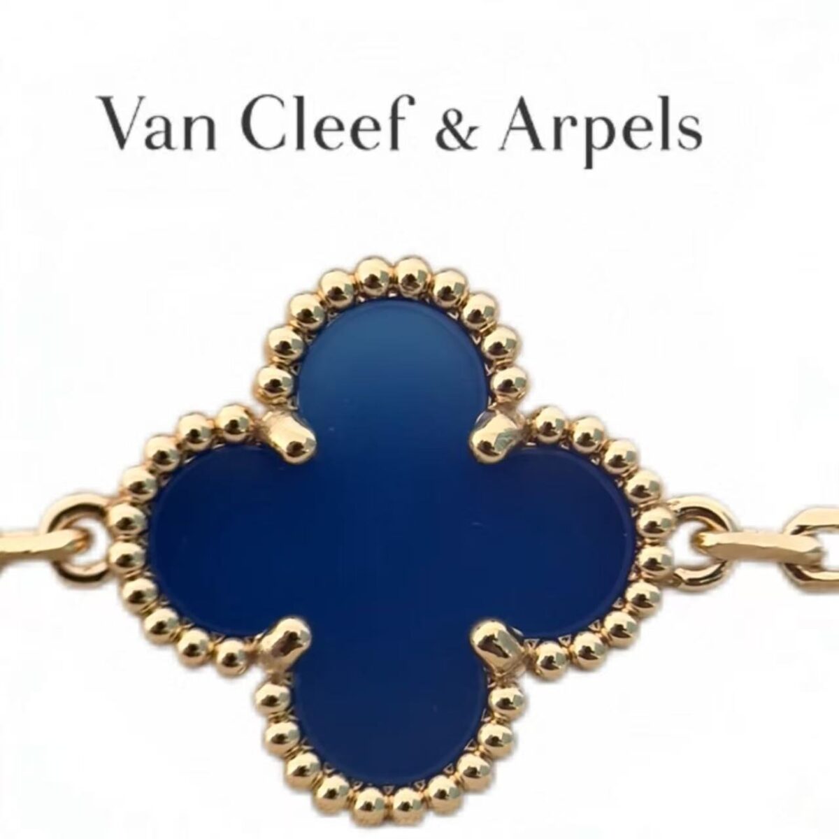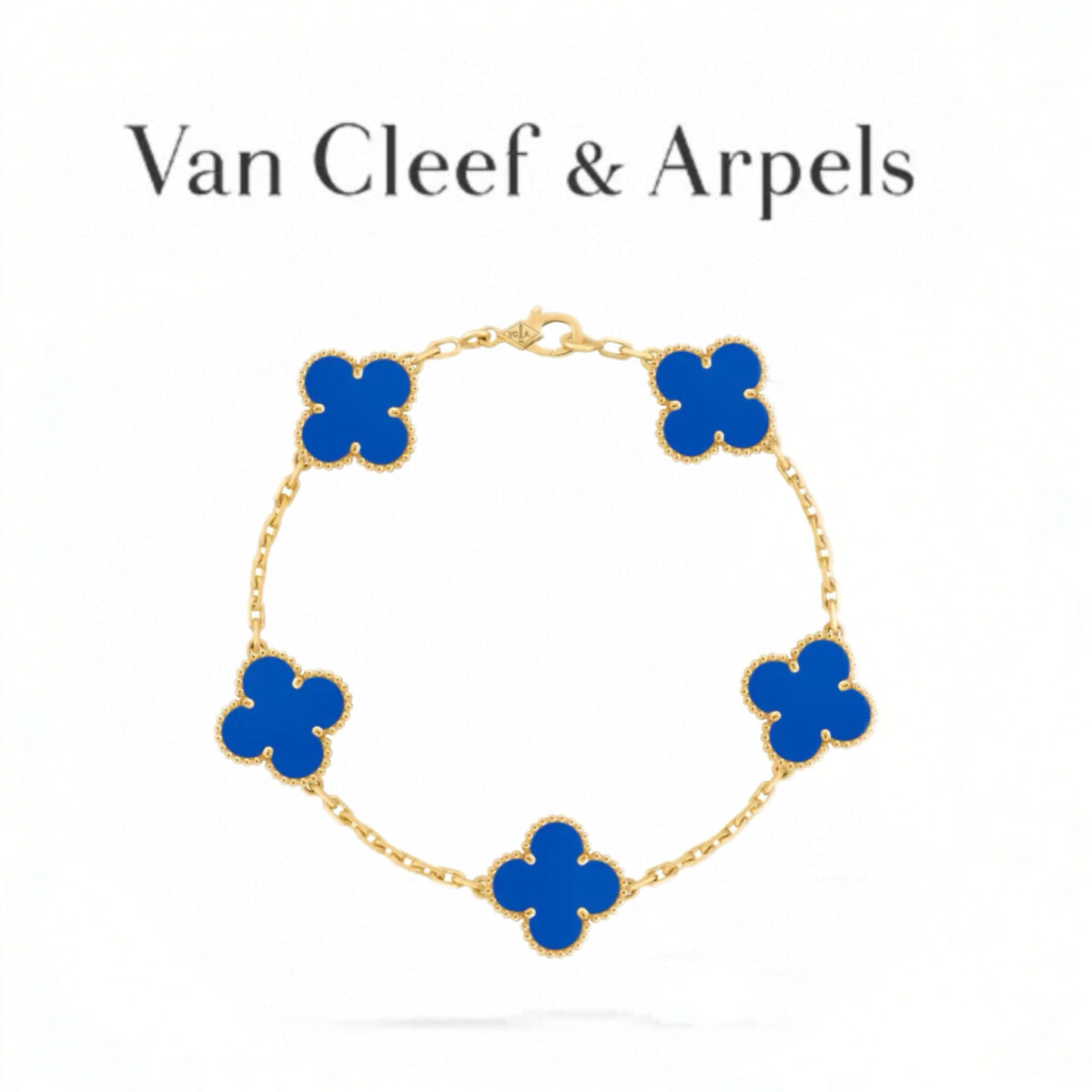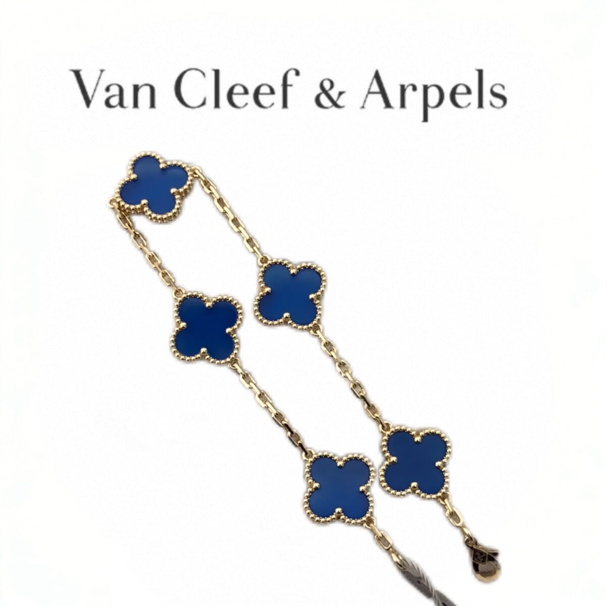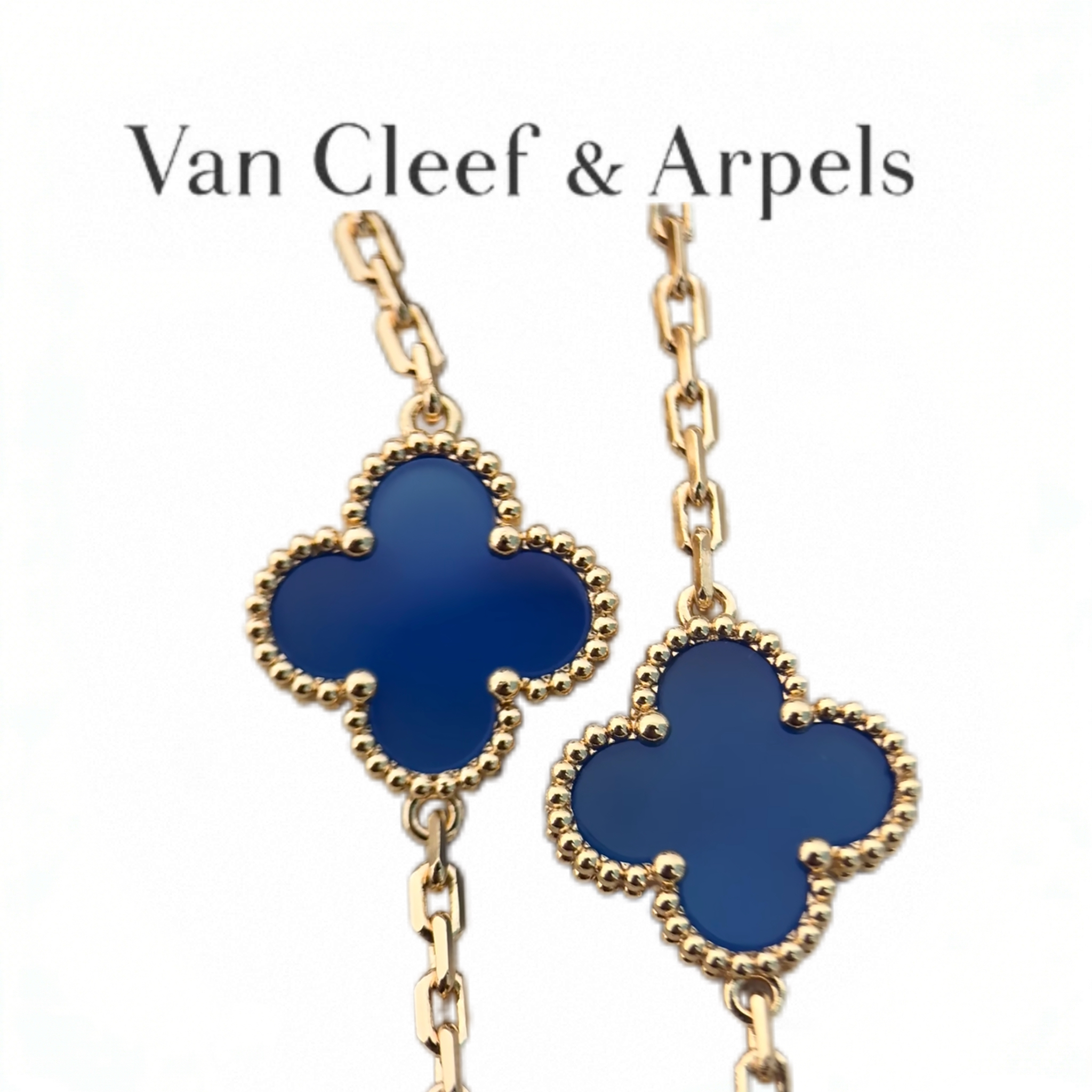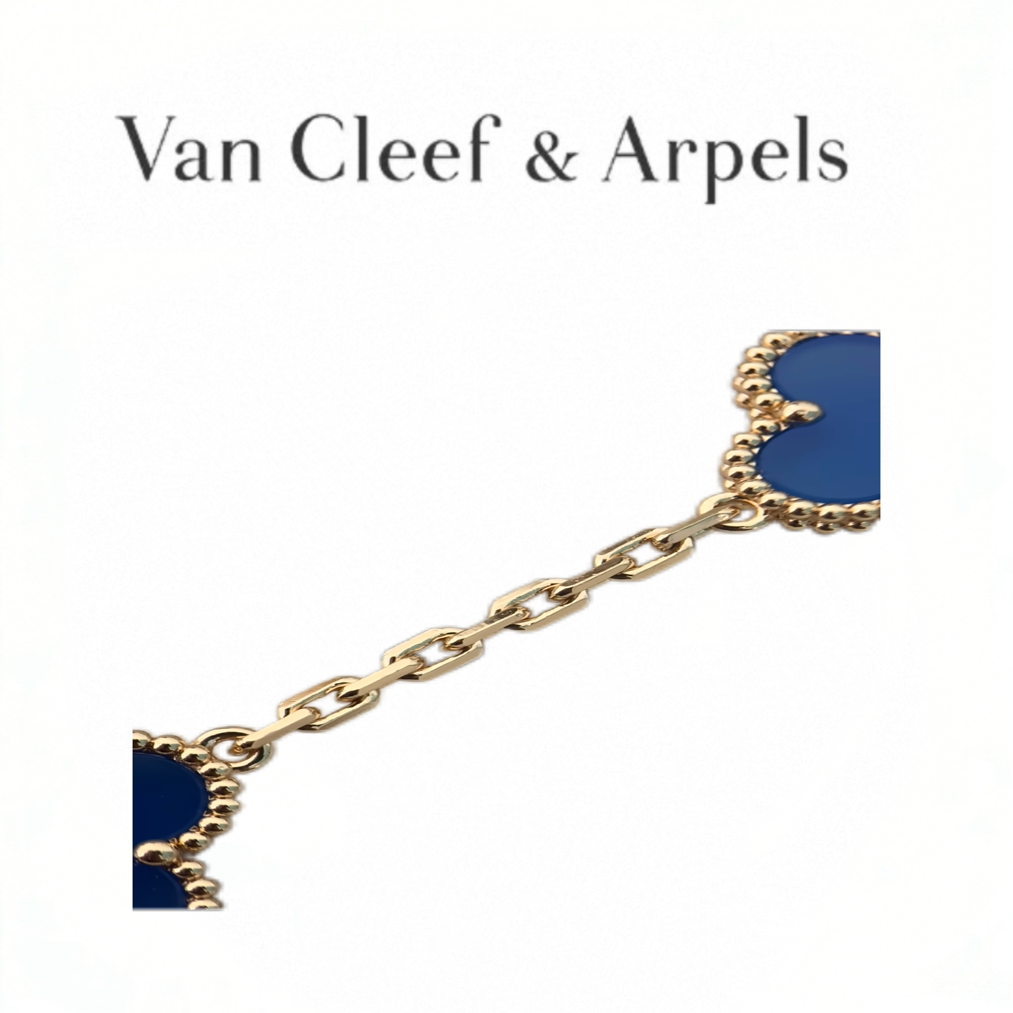 • Material: Premium 18K gold-plated brass chain & bezel, deep blue agate stone motifs (hand-polished to match original luster), lobster clasp engraved with VC&A signature.