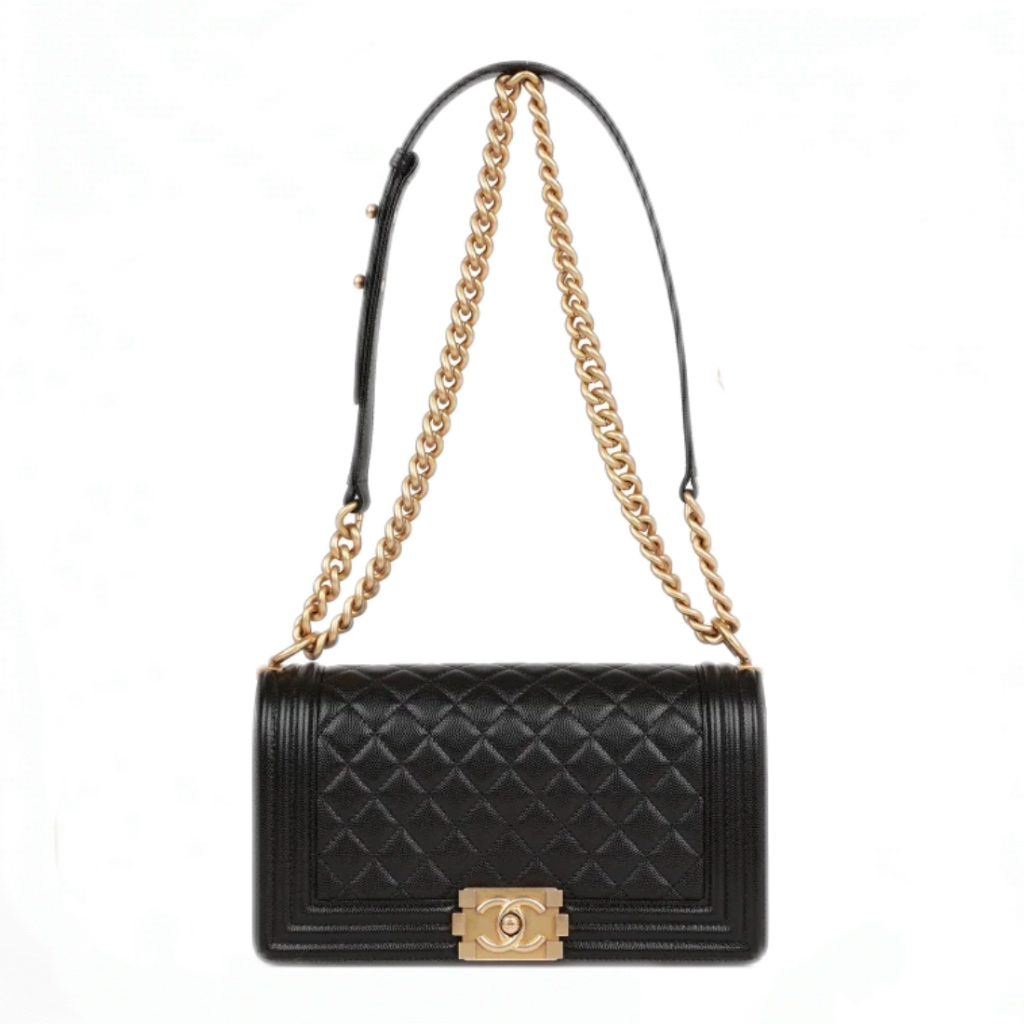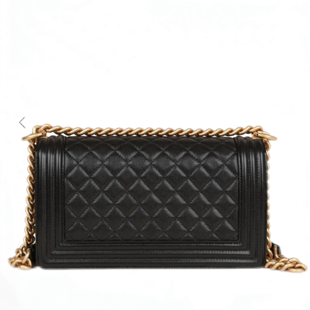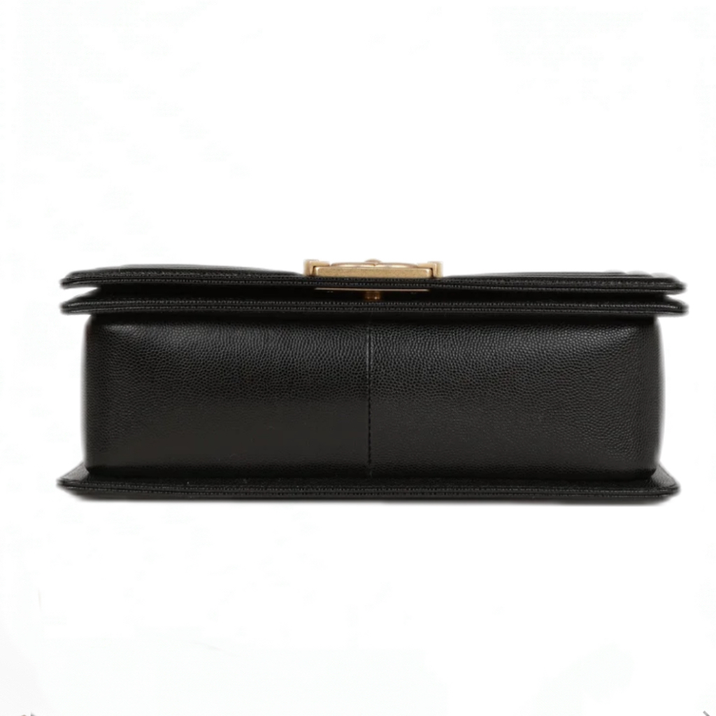 Replica Chanel Boy Medium Caviar Calfskin Black Handbag Gold Hardware Caviar Calfskin Leather