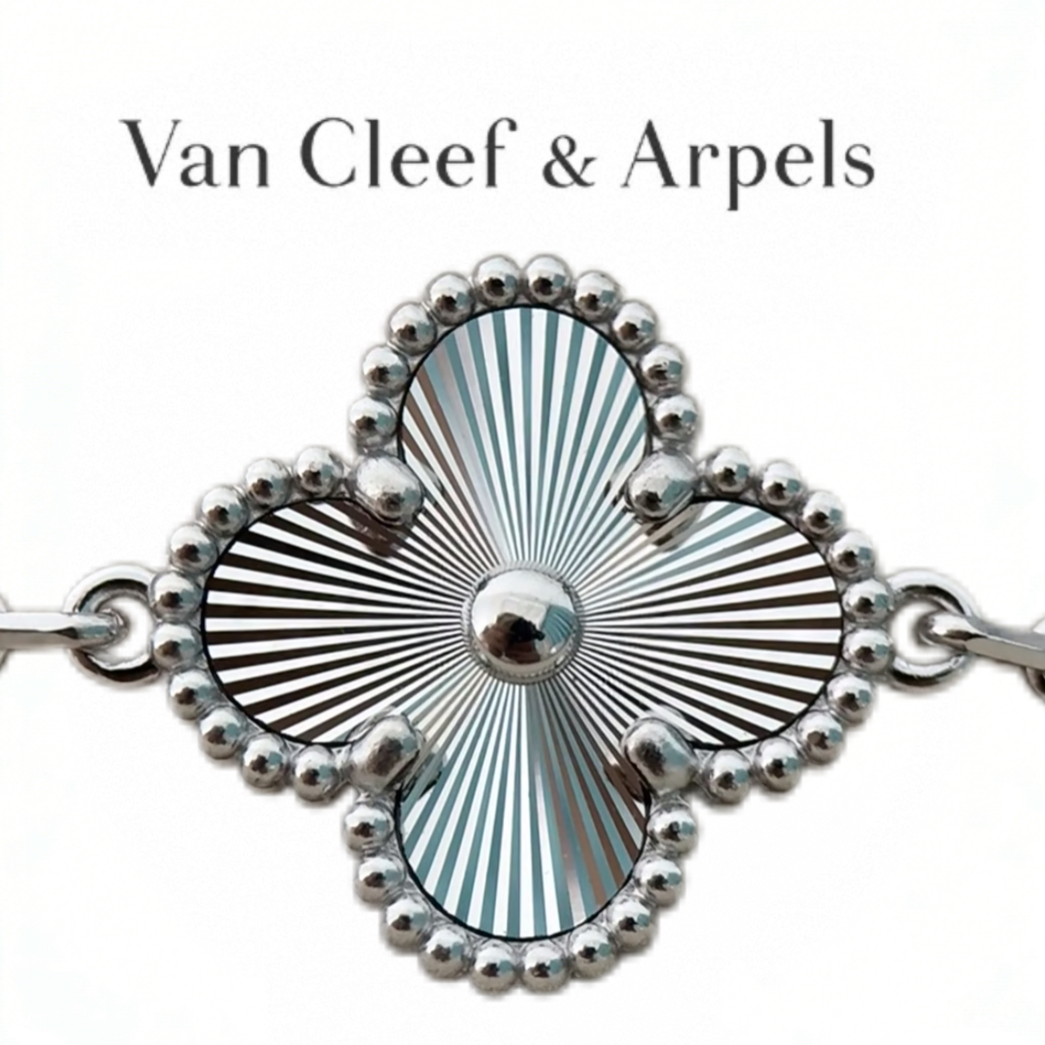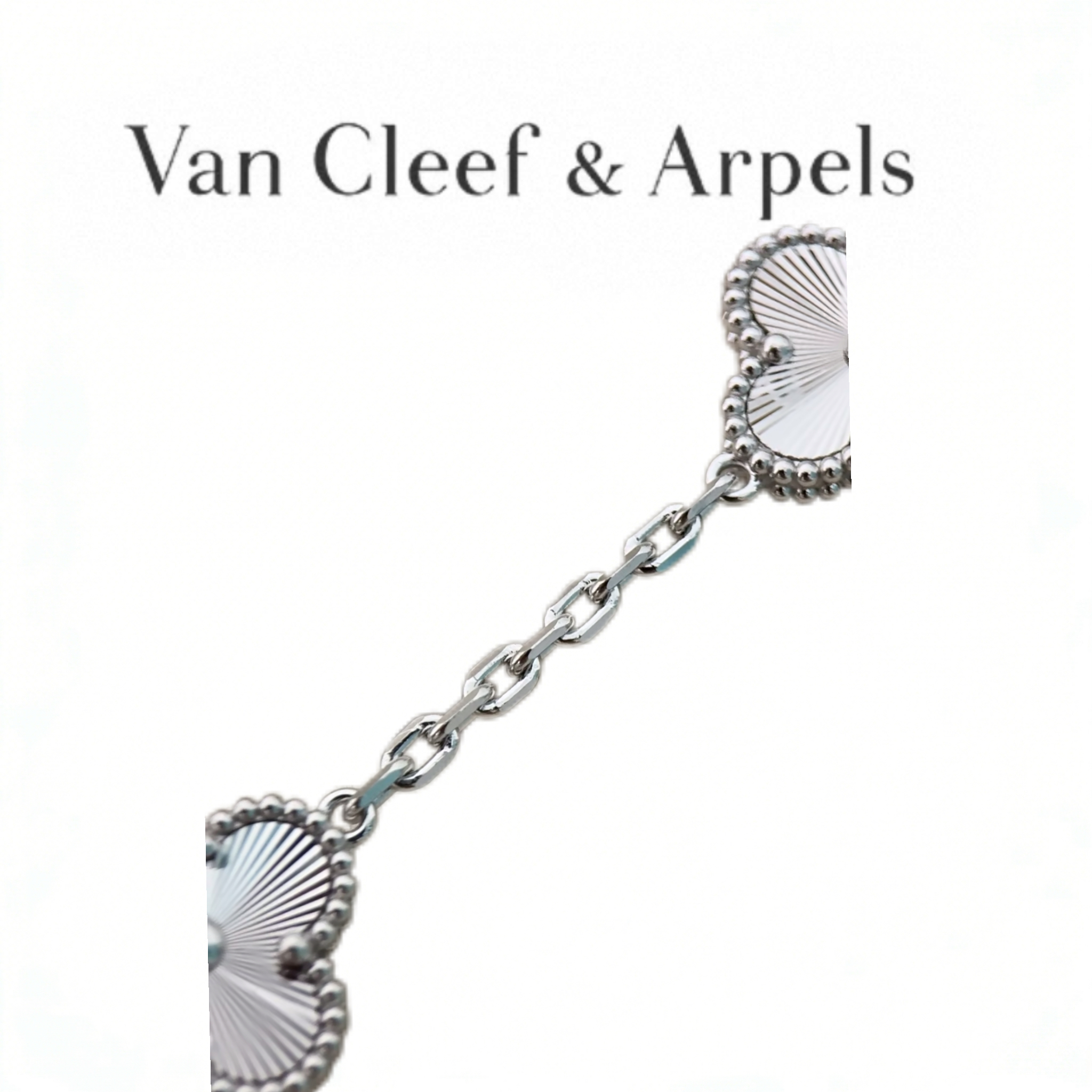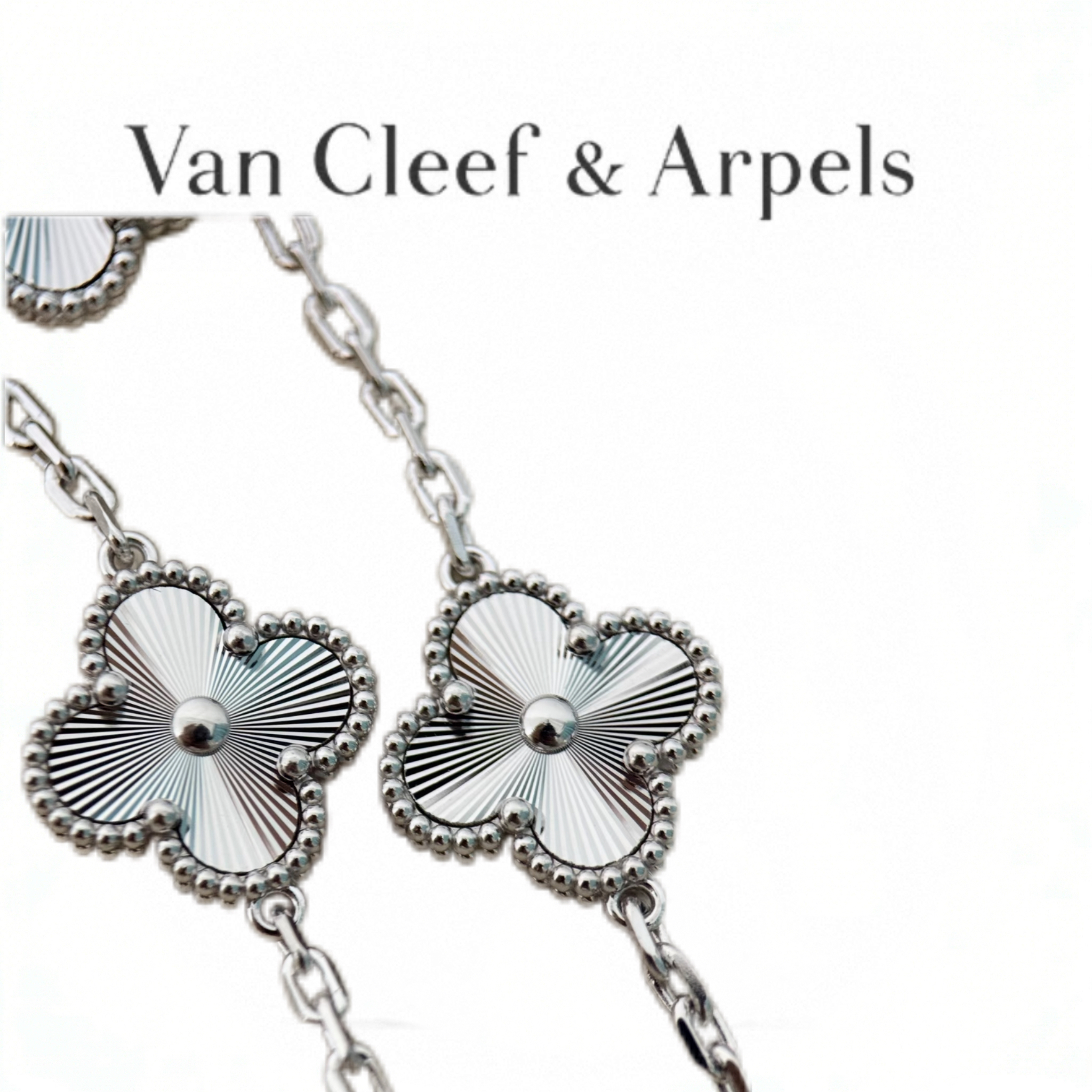 Timeless, luminous, and versatile. The radiant guilloché white gold clover motifs add a sophisticated, eye-catching touch to any outfit—perfect for everyday wear or special occasions.