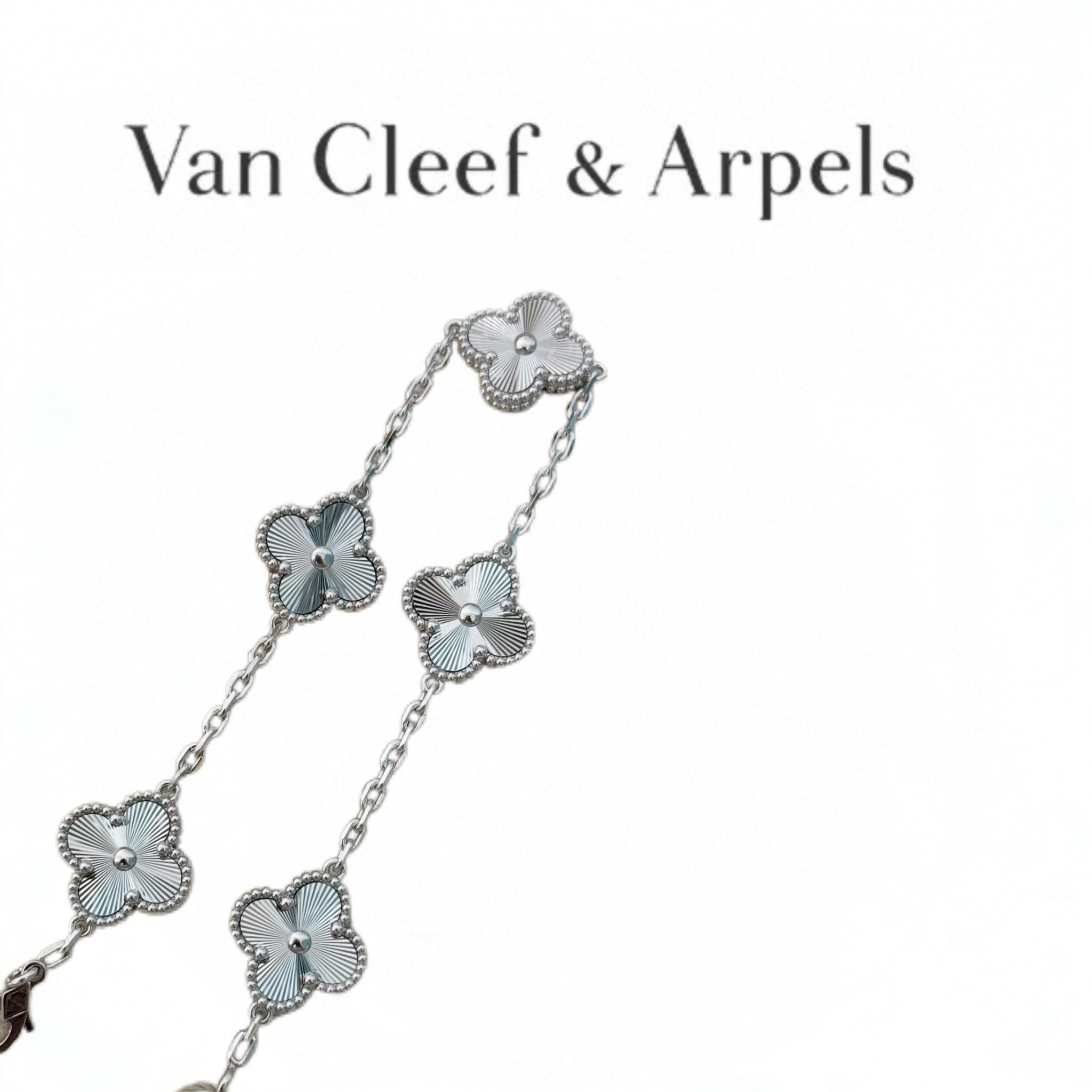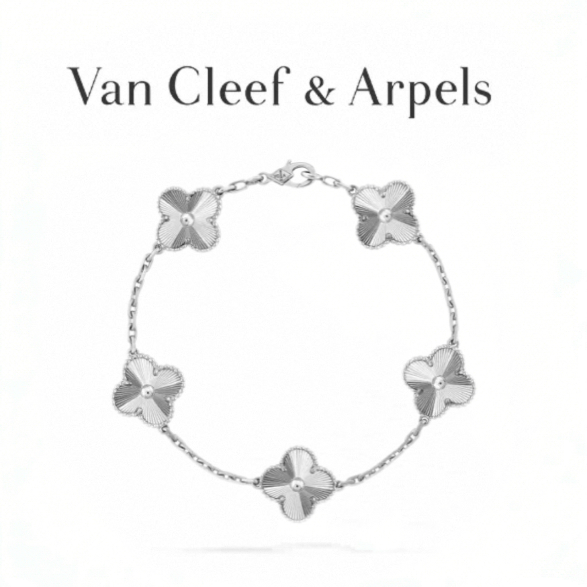 Replica Van Cleef & Arpels Vintage Alhambra 5-Motif Bracelet Guilloché White Gold-Plated